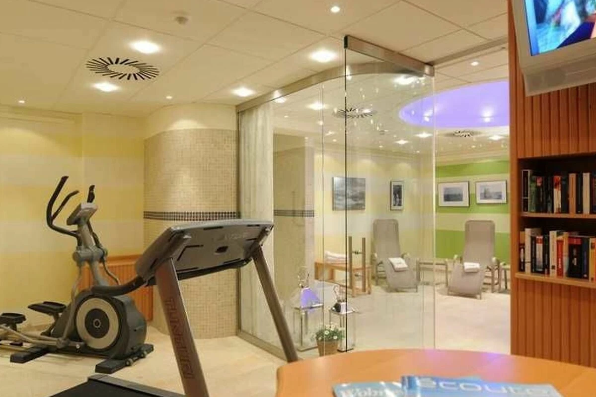 Im Fitness-Raum finden Sie: Ergometer, Laufband, Fahrrad, Rudergerät, TV und Musikanlage, eine kleine Bar, einen Kühlschrank, Gesellschaftsspiele und die neuesten Bücher und Zeitschriften.