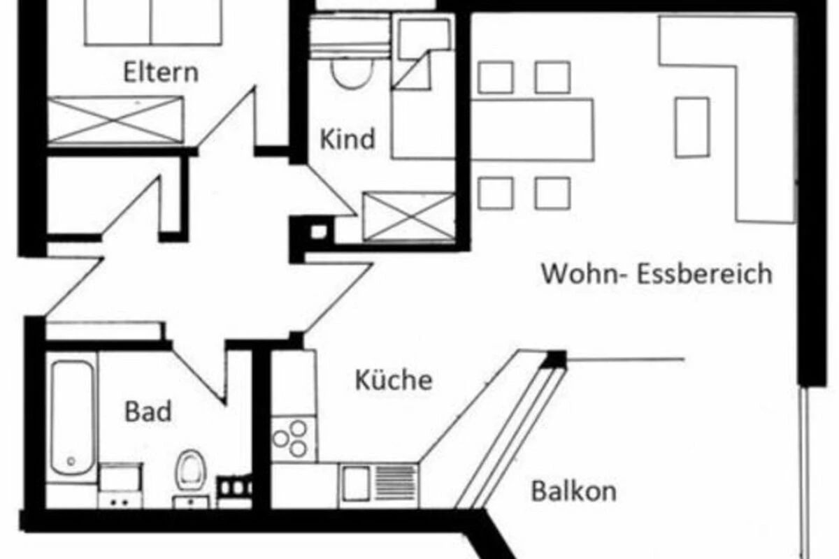Auf ca. 60 qm stehen Ihnen ein kleiner Flur mit Garderobe, ein Schlafzimmer mit Doppelbett, ein Schlafzimmer mit 2er Etagenbett, Wannenbad mit Duschwand und WC, offene Einbauküche mit kleinem Tresen und ein grosszügiger Wohn-Essbereich zur Verfügung.