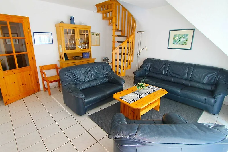 - Wohnzimmer mit Sat.-TV, Radio, CD, Cassette, Spiele.