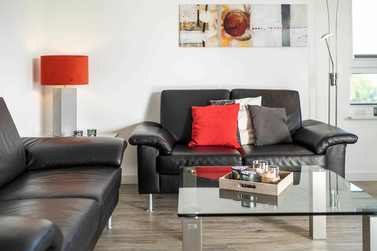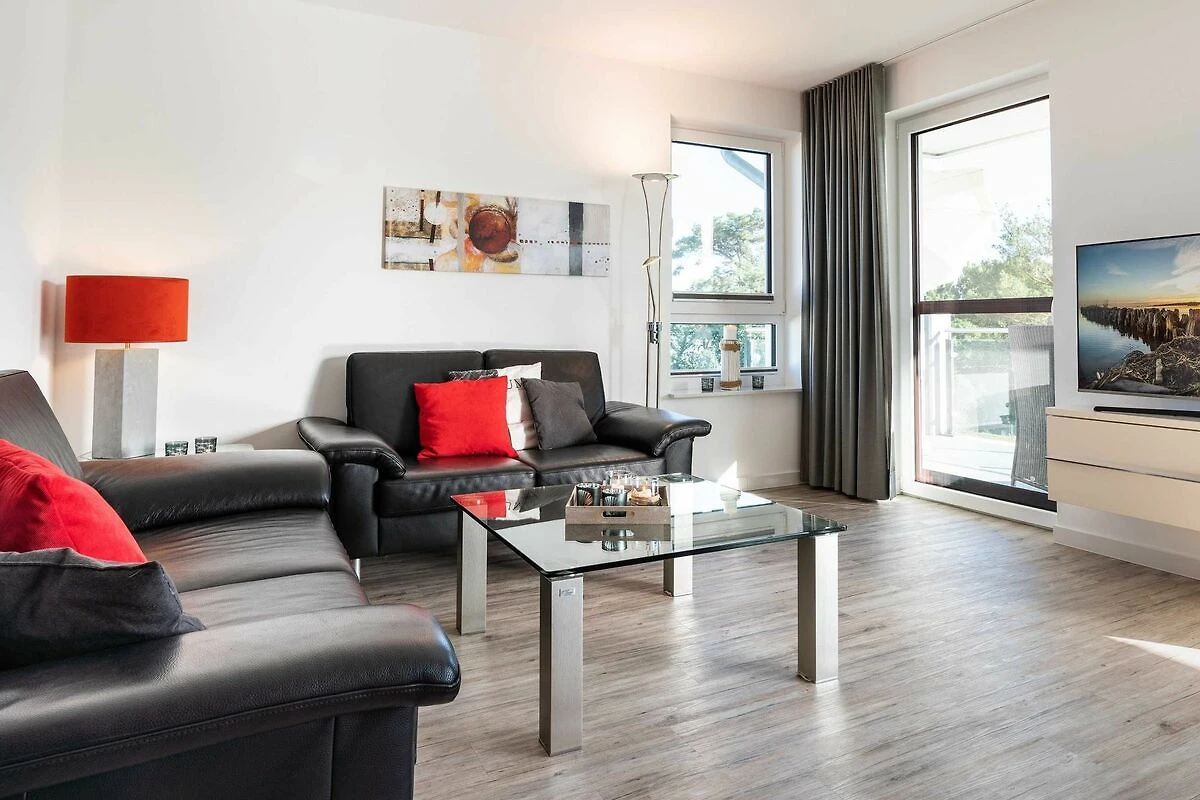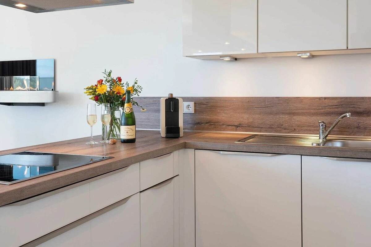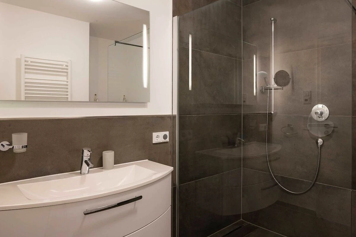 Diese lichtdurchflutete, helle 4-Zimmer-Wohnung im obersten Geschoss von Haus 2 (Aufzug vorhanden) mit Platz für maximal 6 Personen verfügt über eine Wohnfläche von 94 m² und hat 3 Schlafzimmer sowie 2 voll ausgestattete Duschbäder. Die grosse Sonnenterrasse mit 17 m² liegt in idealer Süd-Ausrichtung. Die Wohnung ist modern eingerichtet mit offenem Wohn-Essbereich, grossem Esstisch, Ledersofa sowie Flat-TV (inkl. Sky-Abo). Die hochwertig ausgestattete Küche, offen zum Wohnbereich, lässt keine Wünsche offen. Erholsamer Schlaf in den beiden Schlafzimmern mit Boxspringbetten und Flat-TV ist garantiert. Im dritten Schlafzimmer befindet sich ein bequemes Schlafsofa (Liegefläche: 1,60 x 2,00 m), Schreibtisch und ein Flat-TV. Auf dem grossen, überdachten Sonnenbalkon mit Essgruppe und zwei Relax-Sesseln, Fusshockern sowie einem Sonnenschirm können Sie die Seele baumeln lassen.