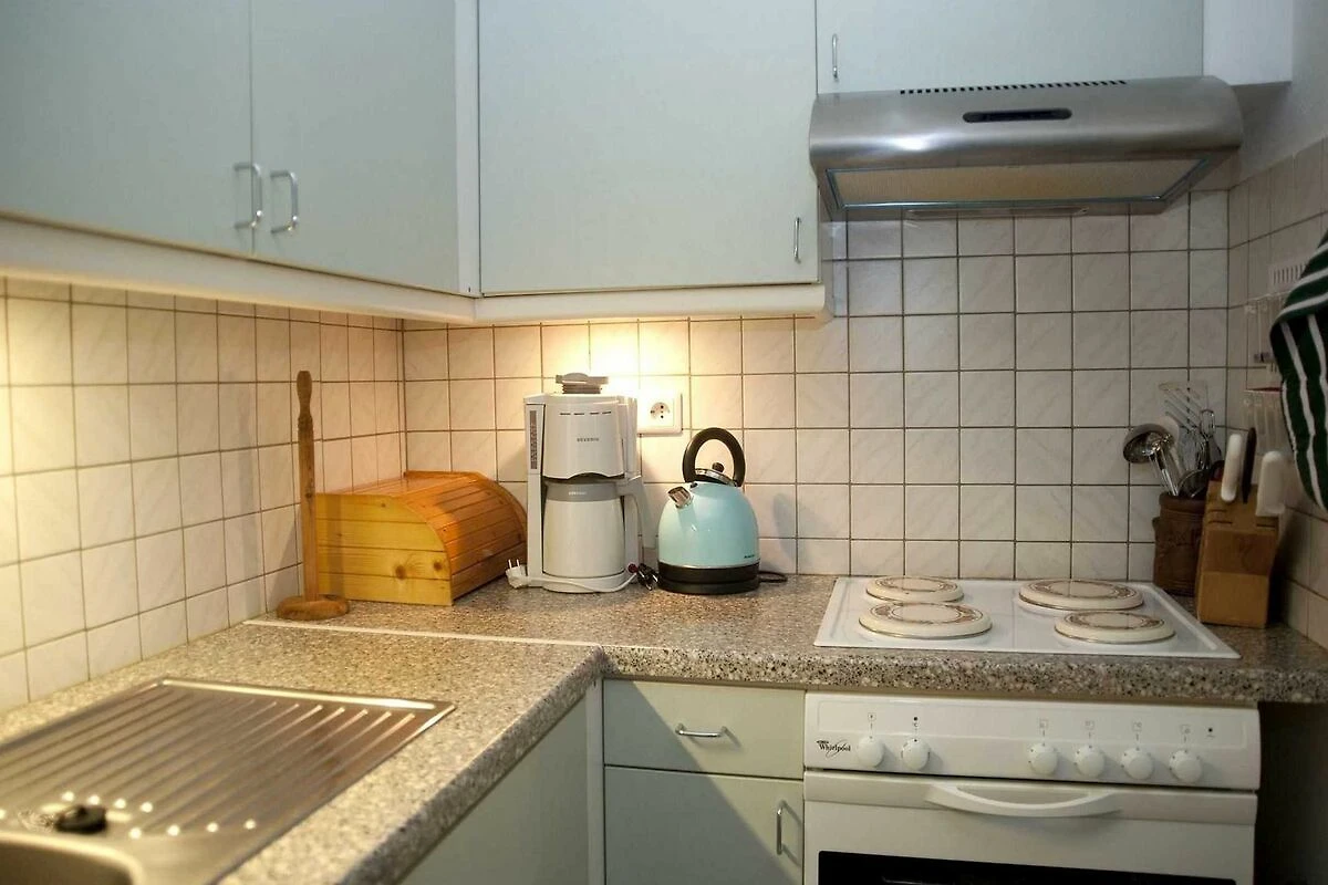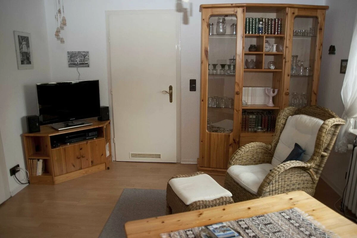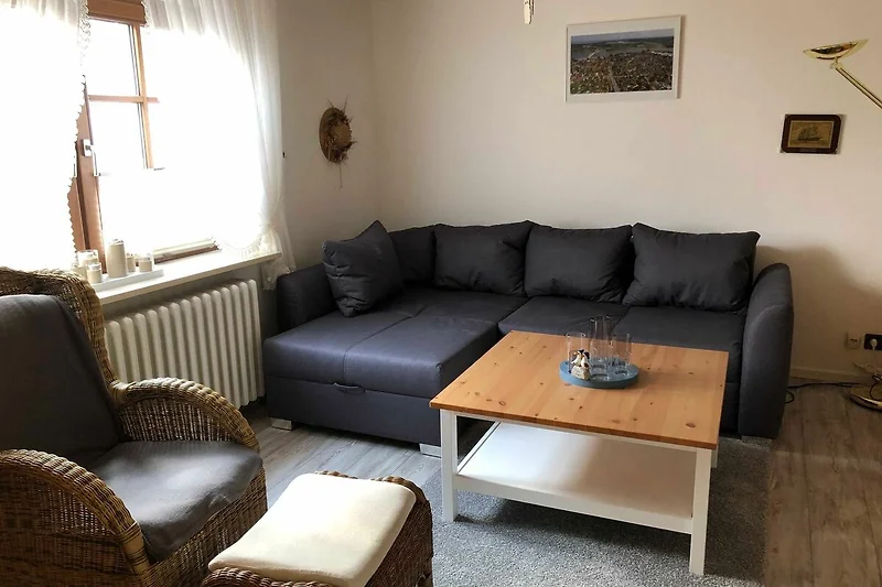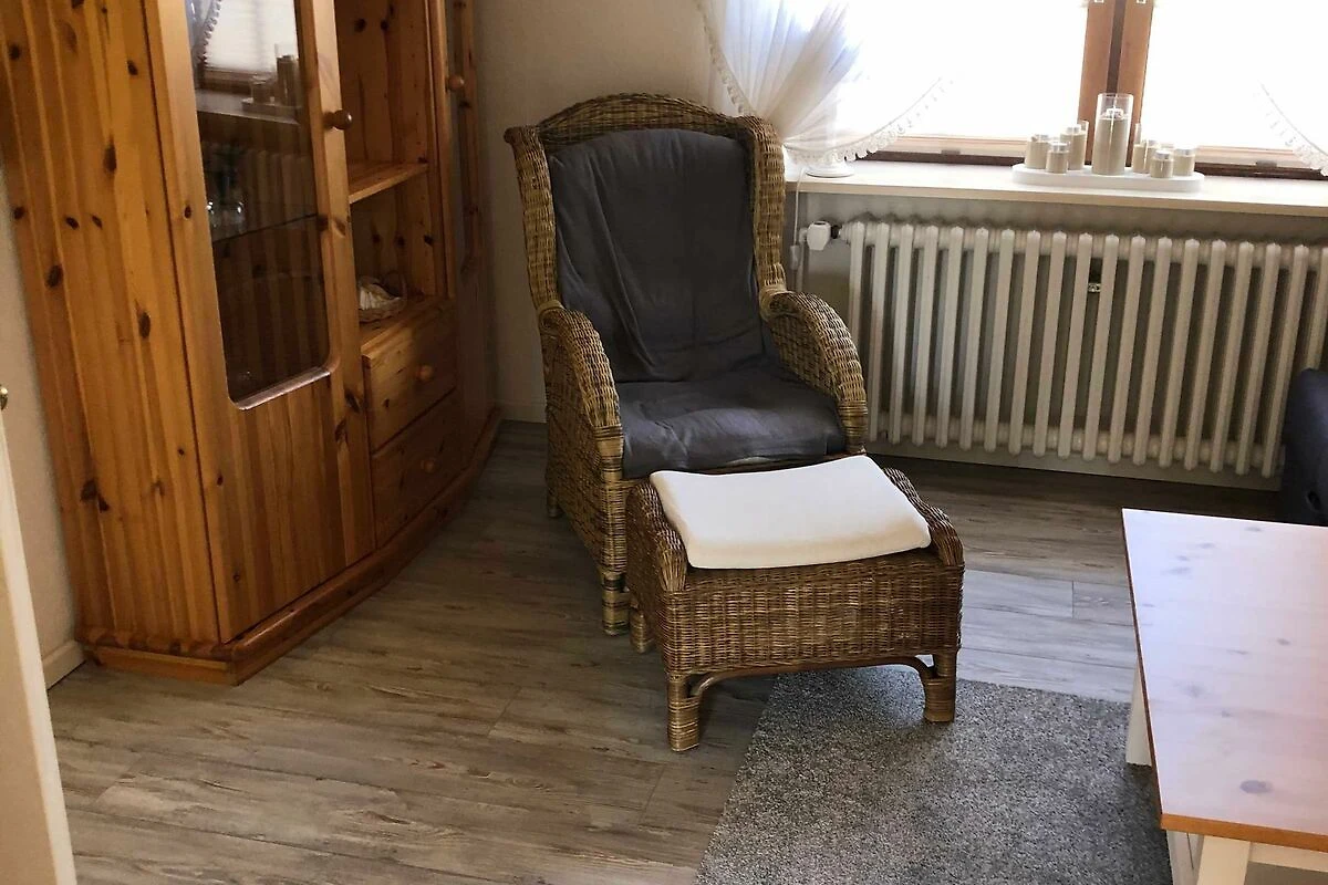 Die im Erdgeschoss liegende hell und geschmackvoll eingerichtete Ferienwohnung (42 qm) ist für 2 Personen(auch Allergiker geeignet), mit eigener Terrasse und diversen Sitz- und Liegemöglichkeiten im Garten. Direkt vor dem Haus haben sie für ihren PKW einen eigenen Stellplatz. Die Küche ist mit Mikrowelle, Kühlschrank mit Gefrierfach, Geschirrspüler, Toaster, Eierkocher, Kaffeemaschine, Pad-Maschine, Wasserkocher, ausreichend Geschirr und Besteck, Herd und separaten Backofen ausgestattet. Die Essecke mit Tisch lädt genauso zum Verweilen ein, wie das Wohnzimmer mit gemütlichem Sofa und Sesseln. Moderne Mediengeräte sowie eine Bücher- und Spiele-Sammlung sorgen dafür, dass sie sich wie Zuhause fühlen, WLAN und ein Telefon gehören ebenfalls zur Ausstattung. Die Ferienwohnung verfügt über 1 Schlafzimmer mit einem Doppelbett (180 x 200) und einem grossen Kleiderschrank. Im Bad finden sie Dusche-WC, Waschbecken, Waschmaschine/Wäschetrockner und ausreichend Ablagefläche vor. Die Sauna im Keller mit Dusche-WC rundet die geschmackvolle Ausstattung der Wohnung perfekt ab. Bettwäsche und Handtücher sind einmalig pro Person incl.