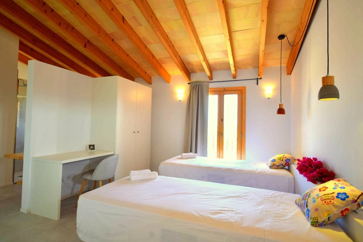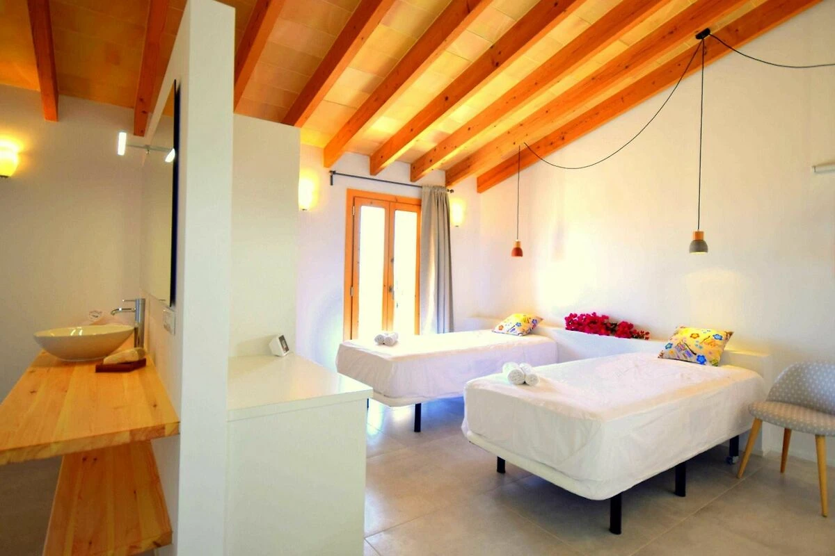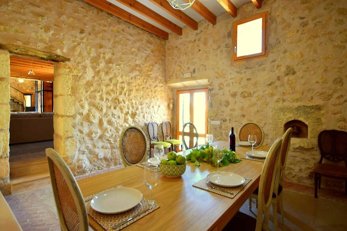 Unser Landhaus Cases d'Alcudiarrom in Vilafranca de Bonany ist der perfekte Rückzugsort für einen unvergesslichen Urlaub auf Mallorca. Diese Immobilie, die ursprünglich ein altes historisches Gebäude war, wurde vollständig renoviert und umgebaut, wobei ihr mallorquinischer Charme bewahrt wurde. Mit sechs Schlafzimmern und sechs Badezimmern bietet das Anwesen Platz für 12 Personen, mit zusätzlichem Platz für Babys und Zustellbetten.
