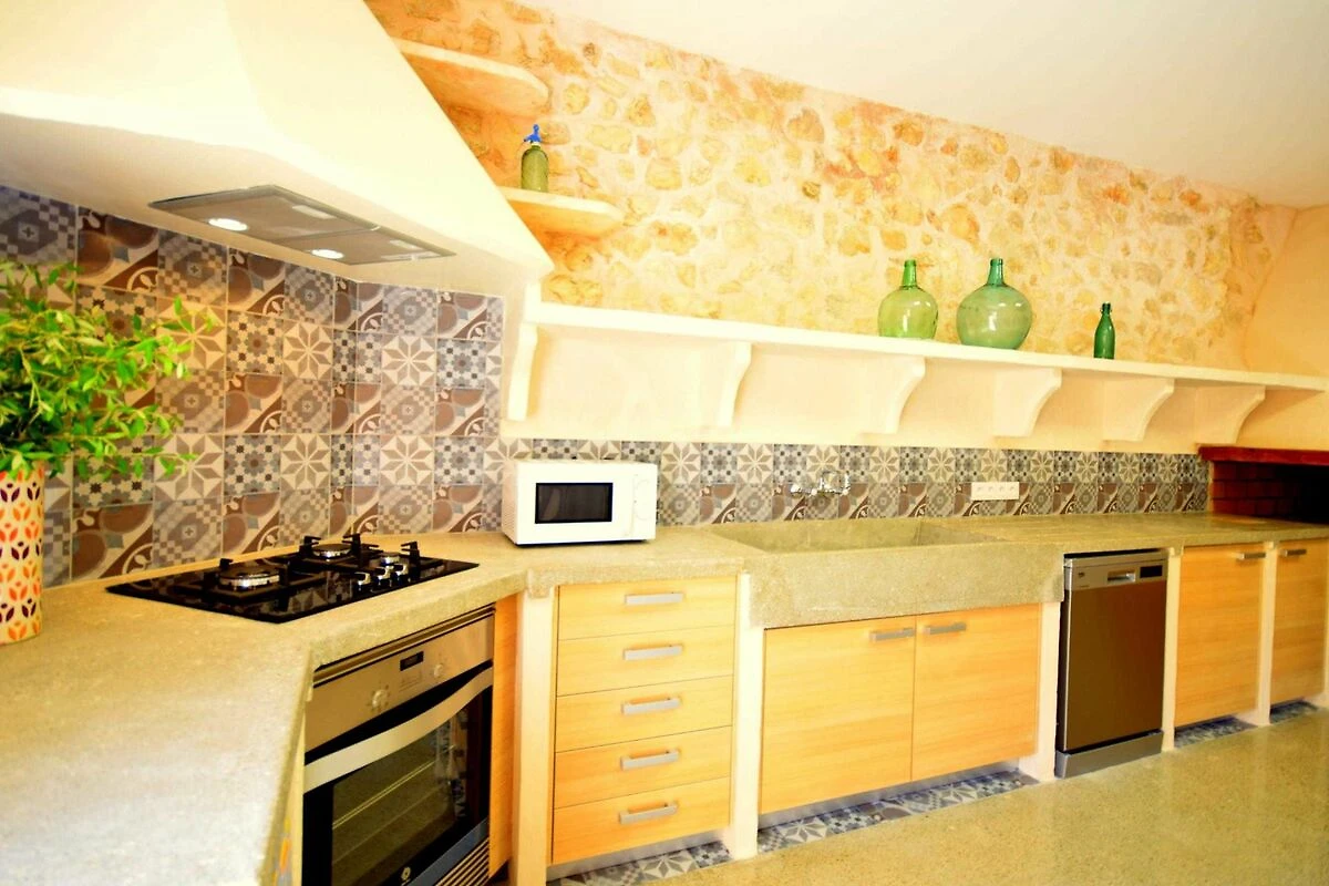 Im Aussenbereich kannst du den privaten Pool mit Panoramablick geniessen, eine grosse Terrasse mit Tischen für 12 Personen und einen Grill für Mahlzeiten im Freien. Ausserdem verfügt das Haus über einen Billardtisch, der für Spass und Unterhaltung sorgt, sowie über einen Abstellraum für Fahrräder. Der Zugang zur Finca erfolgt über einen asphaltierten Weg, der Komfort und Privatsphäre gewährleistet.