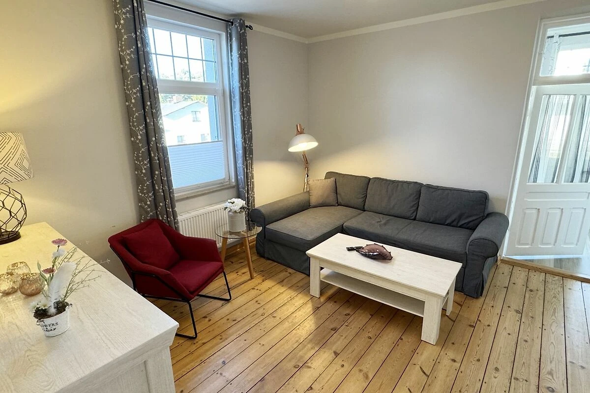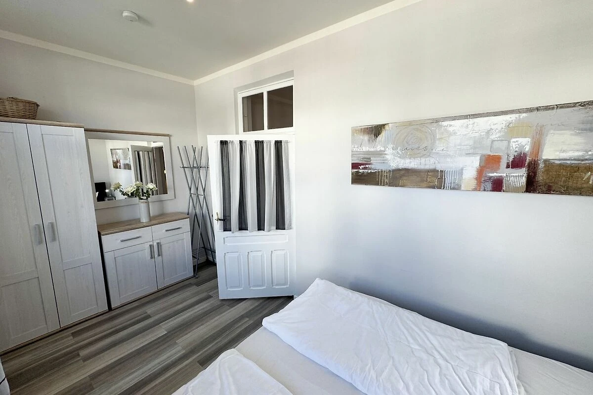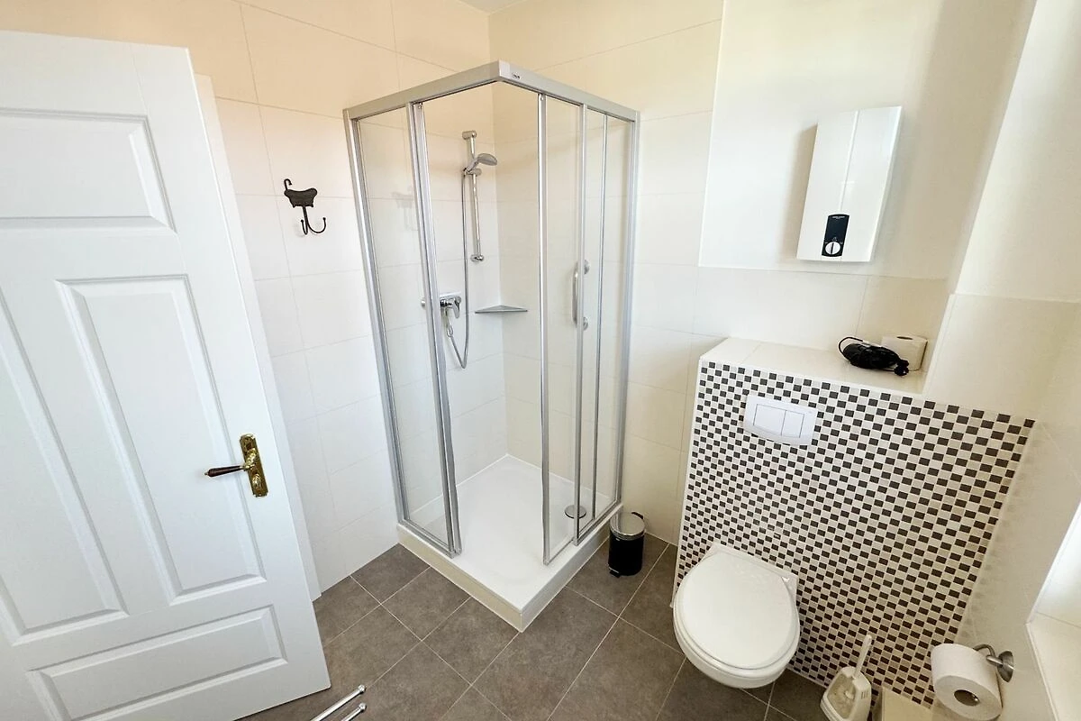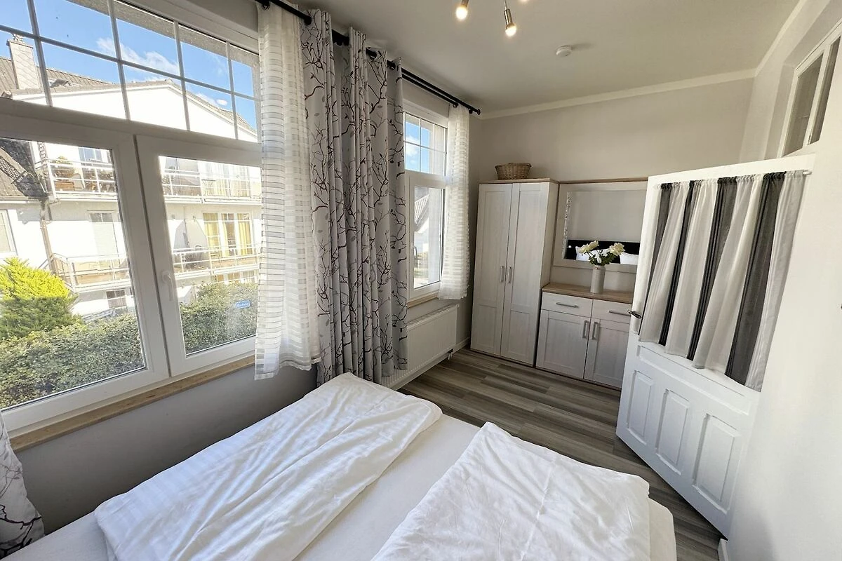 Die Ferienwohnung 3 Fischer un sin Fru umfasst ca. 60 m² und bietet Platz für max. 3 Erwachsene und 1 Kleinkind bis 3 Jahre im Kinderreisebett. Diese Wohnung befindet sich im Obergeschoss des Hauses Seestern und ist eine Nichtraucherwohnung. Sie betreten die Wohnung und ein kleiner Flur mit Garderobe bietet Platz und Stauraum. Von hier aus gelangen Sie in die geräumige Wohnküche, die mit modernen Einbaumöbeln komplett eingerichtet und voll ausgestatteten wurde, Herd mit Ceranfeld, Geschirrspüler, Kühlschrank mit Gefrierfach, Mikrowelle, Kaffeemaschine, Wasserkocher, Toaster sind ebenso vorhanden wie diverse Küchenutensilien. Hier können Sie gemeinsam Ihr Essen zubereiten. Alles was Sie brauchen steht zur Verfügung. Der Essplatz bietet Ihnen Platz zum Essen und zum Verweilen. Auch auf dem angrenzenden geräumigen und bestuhlten Balkon (West) Blick Richtung Bodden - finden Sie ausreichend Platz und können hier Ihren Strandtag in der Abendsonne in Ruhe ausklingen lassen. Eine elektrische Markise sorgt für Sonnenschutz. Im Wohnbereich mit Flachbild-TV und Radio mit Bluetooth, finden Sie einen gemütlichen Couchbereich zum Ausruhen (Aufbettungsmöglichkeit für 3. Person 1,40 m x 2,00 m) mit Couchtisch, Lesesessel, Sideboard und Leselampe. Hier schliesst sich die Veranda an, die wir zu einem Schlafzimmer mit Boxspringbett (1,80 m x 2,00 m), Kleiderschrank und Sideboard eingerichtet haben. Hier können Sie nun abends vom Bett aus die Sterne betrachten und bei Ostwind die Ostsee rauschen hören. Im Bad mit Fenster wurden hochwertige Fliesen verlegt. Dusche, Waschplatz, Spiegel, Fön, WC und Handtuchheizkörper gehören hier zur Ausstattung. Auch auf Internetanschluss (WLAN) müssen Sie im Urlaub nicht verzichten. Dieser ist inklusive für Sie. Im Wohnzimmer und in der Küche konnten wir den alten Dielenboden erhalten und aufarbeiten. Insektenschutzgitter und Verdunklungsmöglichkeiten sind vorhanden. 2 Haustiere sind gegen eine Gebühr willkommen. Eine Waschmaschine und ein Trockner stehen allen Gästen gegen Gebühr zur Verfügung. Diese Räumlichkeiten befinden sich auf der Hofseite. Für unsere kleinen Gäste stehen je 1 Kinderreisebett (ohne Zusatzmatratze / ohne Bettinlett) und 1 Hochstuhl pro Wohnung inklusive zur Verfügung. Ihr PKW-Stellplatz (Nr. 3) befindet sich auf dem Grundstück sowie ein Gemeinschaftsgrill. Die Erstausstattung eines Wäschepaketes (komplette Bettwäsche, 1 Duschhandtuch, 2 kleine Handtücher) können Sie bis 14 Tage vor Anreise gegen einen Aufpreis dazu buchen oder durch eigene ergänzen. Ab 2 gebuchten Paketen erhalten Sie einmalig 1 Geschirrhandtuch und 1 Duschvorleger hinzu.