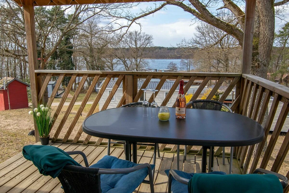 Die komfortabel eingerichteten mobilen Ferienhäuser befinden sich in dem Camping- und Ferienpark in Lychen direkt am Strandbad des Grossen Lychensees. Von den Ferienhäusern haben Sie einen direkten Zugang zum Wasser. Die Mobilheime liegen im Hang, von dem Sie einen unverbauten Seeblick geniessen können. Die Mobilheime sind mit zwei Schlafzimmern, eines mit Doppelbett (140x200) und eines mit zwei Einzelbetten (80x190), einer komplett ausgestatteten Küche, Wohnraum mit TV/Radio und einer Aufbettungsmöglichkeit (Schlafcouch; 130x190) sowie einem Bad mit Dusche und separater Toilette ausgestattet. Sie können den Sonnenuntergang von der integrierten Terrasse geniessen.