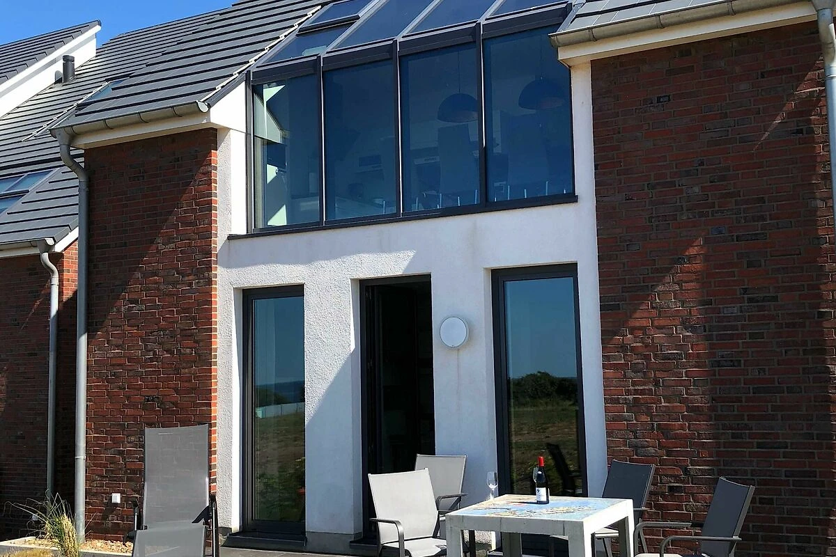 Die luxuriöse Wohnung hat ca. 55 qm Wohnfläche und befindet sich im Erdgeschoss. Der Wohnbereich mit offener, komplett ausgestatteter Küche und Essplatz hat einen Zugang zur Terrasse und einen unverbauten Blick auf die Nordsee und das grüne Oberland. Eine zweite Terrasse befindet sich auf der südlichen Sonnen-Seite der Wohnung.