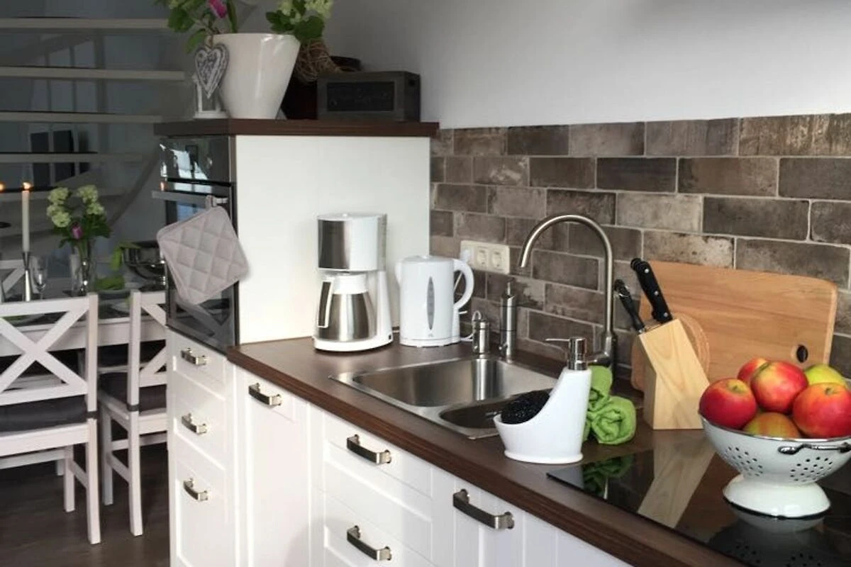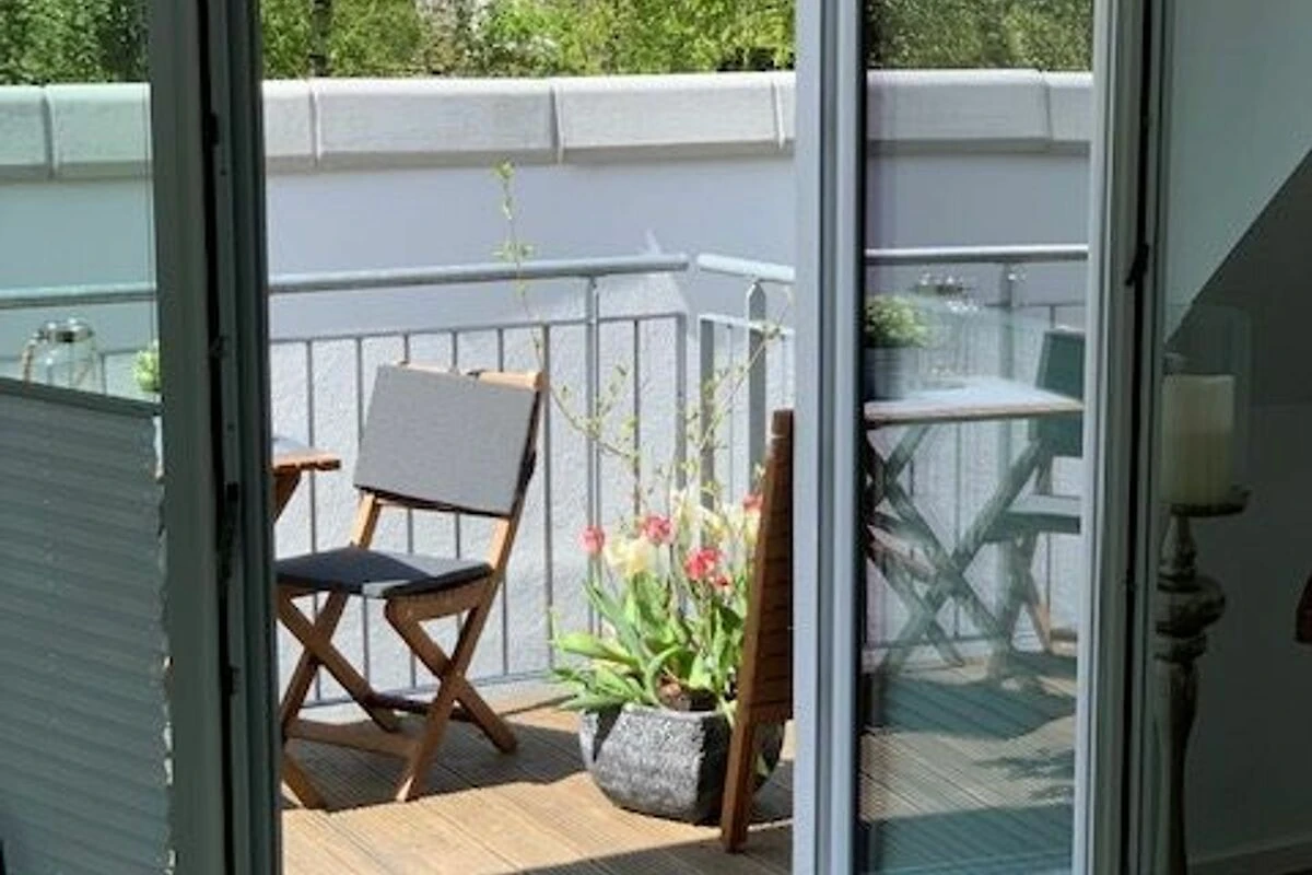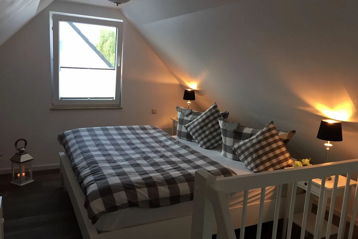 Die komfortable Ferienwohnung liegt im ersten Stock und verfügt über zwei Stockwerke mit Balkon.
