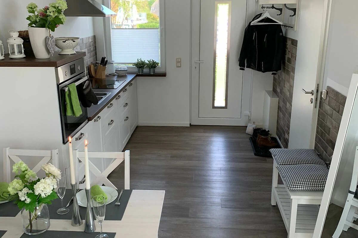 Ein kostenfreier Aussenstellplatz steht direkt vor dem Haus zur Verfügung. Der Eingang der Ferienwohnung in der ersten Etage ist über eine Gittertreppe zu erreichen.