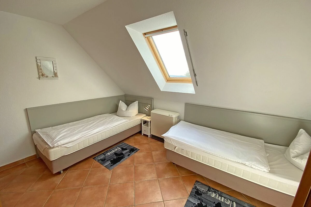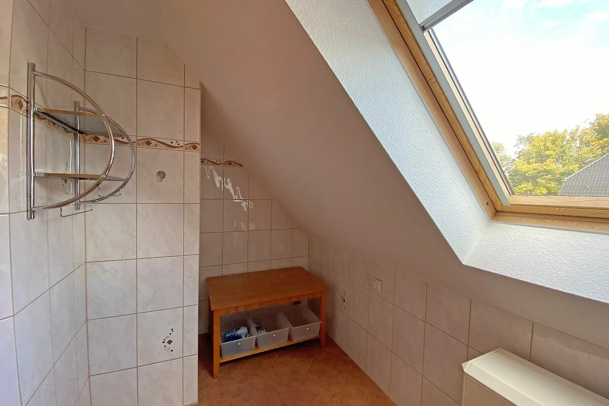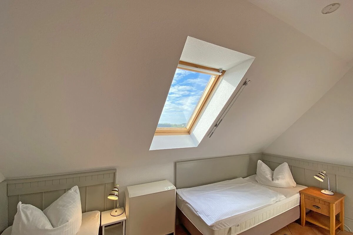 Die Nichtraucherwohnung mit ca. 66qm besticht durch ihre komfortable Raumaufteilung. Die in 1. Etage liegende Maisonettferienwohnung Nr.9 bietet ausreichend Platz für 2 bis 4 Erwachsene + 1 Kleinkind bis 3 Jahre im Kinderreisebett. Im Wohnbereich wird die Unterhaltungstechnik durch einen modernen Smart-TV und ein CD bzw. DVD-Player abgerundet. Auch im Urlaub müssen Sie nicht auf einen Internetanschluss (W-LAN) verzichten. Dieser ist für Sie inklusive. Für die Gemütlichkeit wurde der Wohnbereich mit Massivmöbeln, einer Stehlampe, zwei Sessel und eine Couch ausgestattet. Den bestuhlten Balkon (Westen) mit einem Sonnenschirm können Sie vom Wohnbereich erreichen. Er lädt bei einem Glas Wein zum Entspannen ein. Die angrenzende Küchenzeile verfügt über eine Spülmaschine, eine Mikrowelle, Ceranfeld mit Backofen, Kühlschrank, Wasserkocher, Toaster, Kaffeemaschine und diverse Küchenutensilien. Bei Ihren Mahlzeiten können Sie vom Esstisch aus, den Blick auf den Selliner See geniessen. Das 1. Schlafzimmer wurde mit einem Doppelbett (1,80m x 2,00m), Nachtischablagen sowie einen Kleiderschrank ausgestattet. Das 2. Schlafzimmer verfügt über 2 Einzelbetten (0,80m x 2,00m), Nachttischablagen und einen Kleiderschrank. Im Tageslichtbad befinden sich eine Dusche, ein Waschtisch, ein WC und ein Fön. Beide Schlafzimmer sowie das Bad erreichen Sie bequem über die Treppe. Fensterläden und Vorhänge dienen zum Verdunkeln der Räumlichkeiten. In allen Räumlichkeiten finden Sie Nachtspeicheröfen. Ein Wäscheständer sowie Reinigungsutensilien stehen für Sie bereit. Haustiere sind in dieser Wohnung nicht erlaubt. Ein PKW-Stellplatz Nr.09 befindet sich direkt auf dem Grundstück. Ihre mitgebrachten oder geliehenen Fahrräder können Sie nach Verfügbarkeit im abschliessbaren Fahrradraum unterstellen. Die Erstausstattung eines Wäschepaketes (komplette Bettwäsche, 1 Duschhandtuch, 1 kleines Handtuch) können Sie bis 14 Tage vor Anreise gegen einen Aufpreis dazu buchen oder durch eigene ergänzen. Ab 2 gebuchten Paketen erhalten Sie einmalig 1 Geschirrhandtuch und 1 Duschvorleger hinzu.
