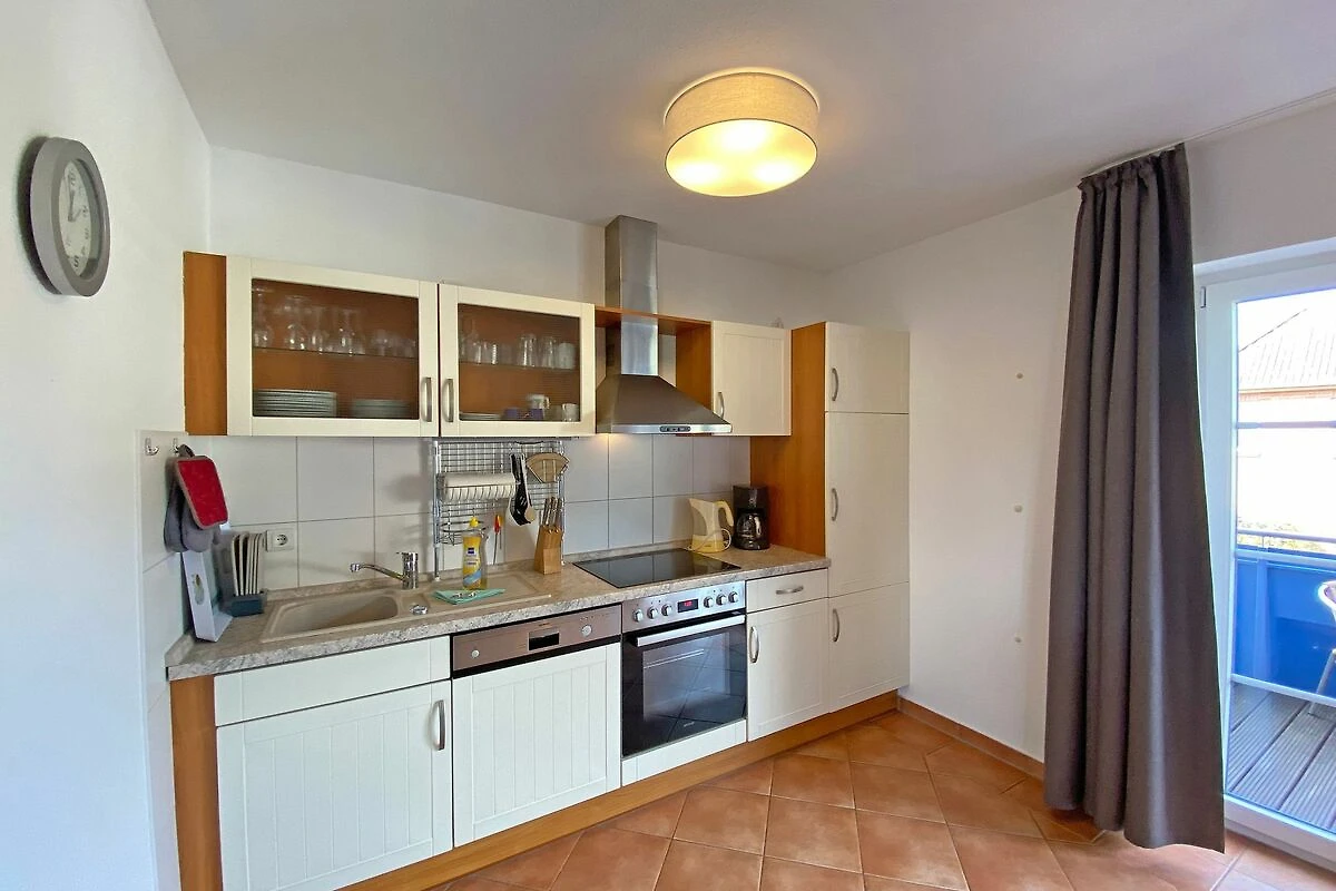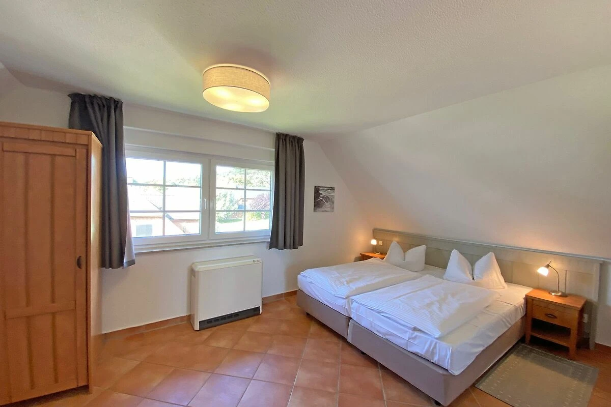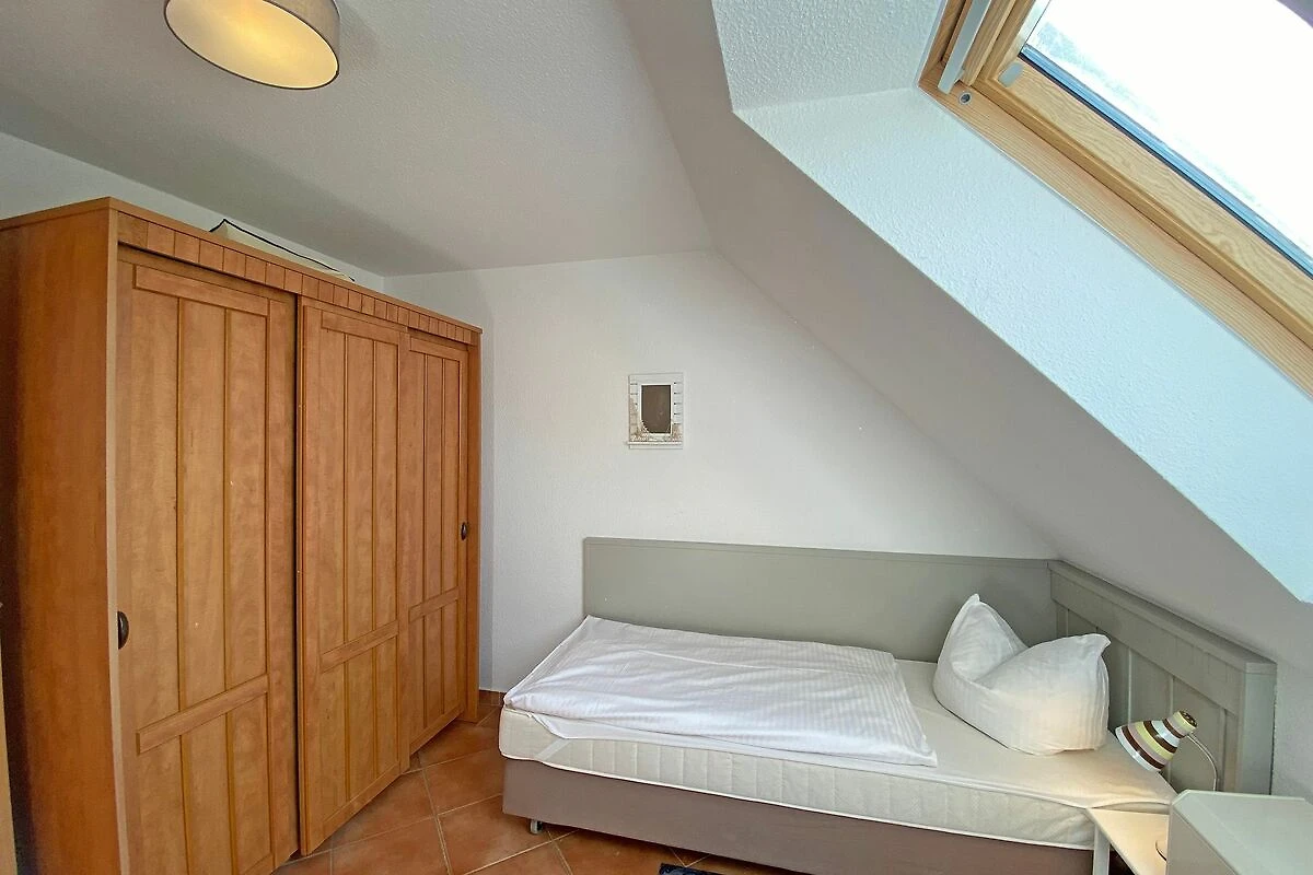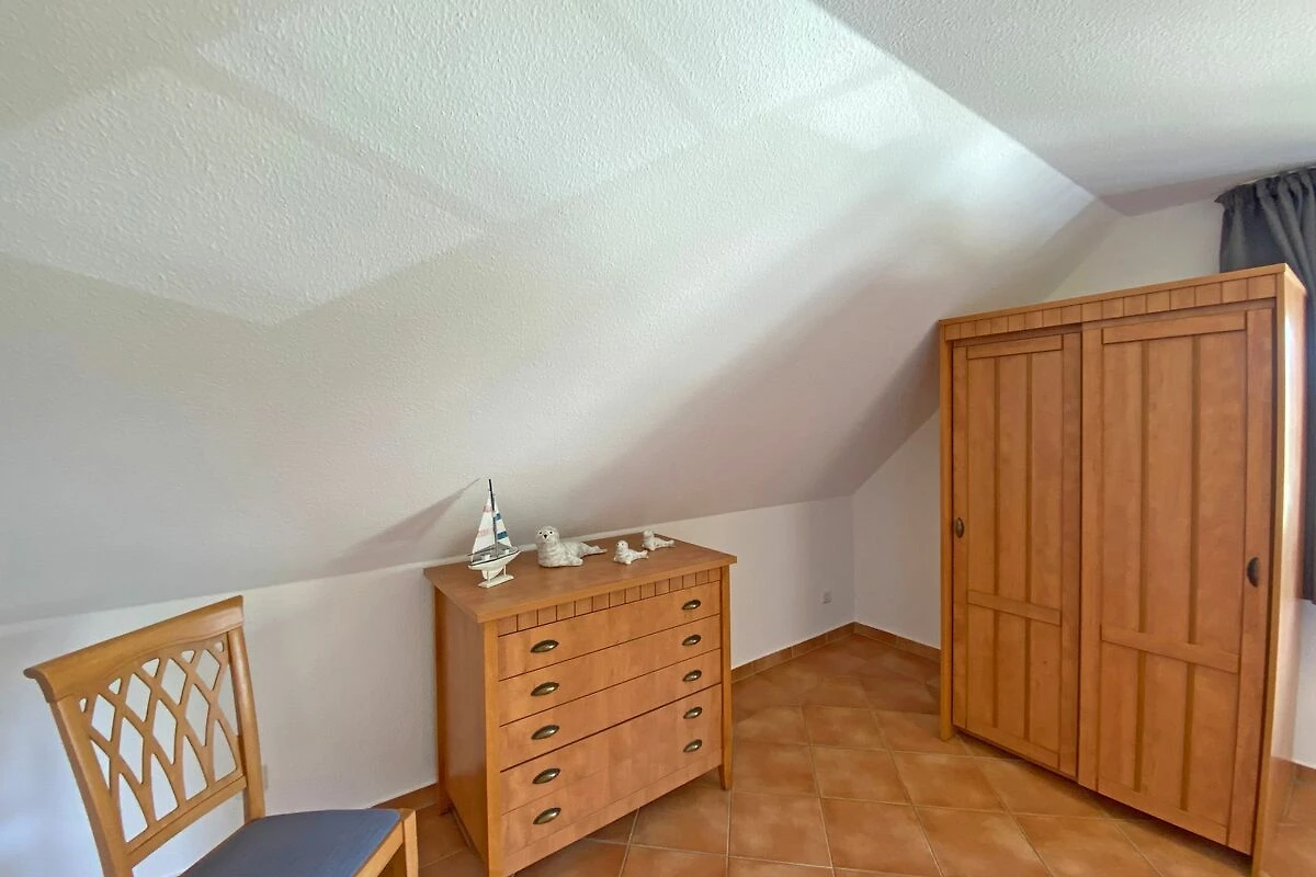 Die Nichtraucherwohnung mit ca. 66qm besticht durch ihre komfortable Raumaufteilung. Die in 1. Etage liegende Maisonettferienwohnung Nr.9 bietet ausreichend Platz für 2 bis 4 Erwachsene + 1 Kleinkind bis 3 Jahre im Kinderreisebett. Im Wohnbereich wird die Unterhaltungstechnik durch einen modernen Smart-TV und ein CD bzw. DVD-Player abgerundet. Auch im Urlaub müssen Sie nicht auf einen Internetanschluss (W-LAN) verzichten. Dieser ist für Sie inklusive. Für die Gemütlichkeit wurde der Wohnbereich mit Massivmöbeln, einer Stehlampe, zwei Sessel und eine Couch ausgestattet. Den bestuhlten Balkon (Westen) mit einem Sonnenschirm können Sie vom Wohnbereich erreichen. Er lädt bei einem Glas Wein zum Entspannen ein. Die angrenzende Küchenzeile verfügt über eine Spülmaschine, eine Mikrowelle, Ceranfeld mit Backofen, Kühlschrank, Wasserkocher, Toaster, Kaffeemaschine und diverse Küchenutensilien. Bei Ihren Mahlzeiten können Sie vom Esstisch aus, den Blick auf den Selliner See geniessen. Das 1. Schlafzimmer wurde mit einem Doppelbett (1,80m x 2,00m), Nachtischablagen sowie einen Kleiderschrank ausgestattet. Das 2. Schlafzimmer verfügt über 2 Einzelbetten (0,80m x 2,00m), Nachttischablagen und einen Kleiderschrank. Im Tageslichtbad befinden sich eine Dusche, ein Waschtisch, ein WC und ein Fön. Beide Schlafzimmer sowie das Bad erreichen Sie bequem über die Treppe. Fensterläden und Vorhänge dienen zum Verdunkeln der Räumlichkeiten. In allen Räumlichkeiten finden Sie Nachtspeicheröfen. Ein Wäscheständer sowie Reinigungsutensilien stehen für Sie bereit. Haustiere sind in dieser Wohnung nicht erlaubt. Ein PKW-Stellplatz Nr.09 befindet sich direkt auf dem Grundstück. Ihre mitgebrachten oder geliehenen Fahrräder können Sie nach Verfügbarkeit im abschliessbaren Fahrradraum unterstellen. Die Erstausstattung eines Wäschepaketes (komplette Bettwäsche, 1 Duschhandtuch, 1 kleines Handtuch) können Sie bis 14 Tage vor Anreise gegen einen Aufpreis dazu buchen oder durch eigene ergänzen. Ab 2 gebuchten Paketen erhalten Sie einmalig 1 Geschirrhandtuch und 1 Duschvorleger hinzu.