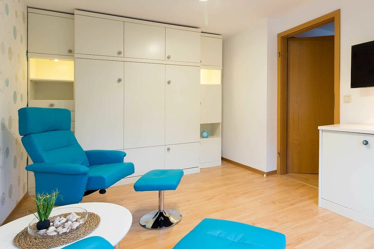 Zwei gemütliche Fernsehsessel mit Fusshocker warten auf Sie, wenn sie sich von einem herrlichen Tag am Strand ein bisschen ausruhen möchten. Von dort aus kann man im modernen Flachbild-Fernseher mit Kabelanschluss das Weltgeschehen oder die Lieblingssendung verfolgen. Kostenloses WLAN mit schneller Internetanbindung stehen Ihnen zur Verfügung.