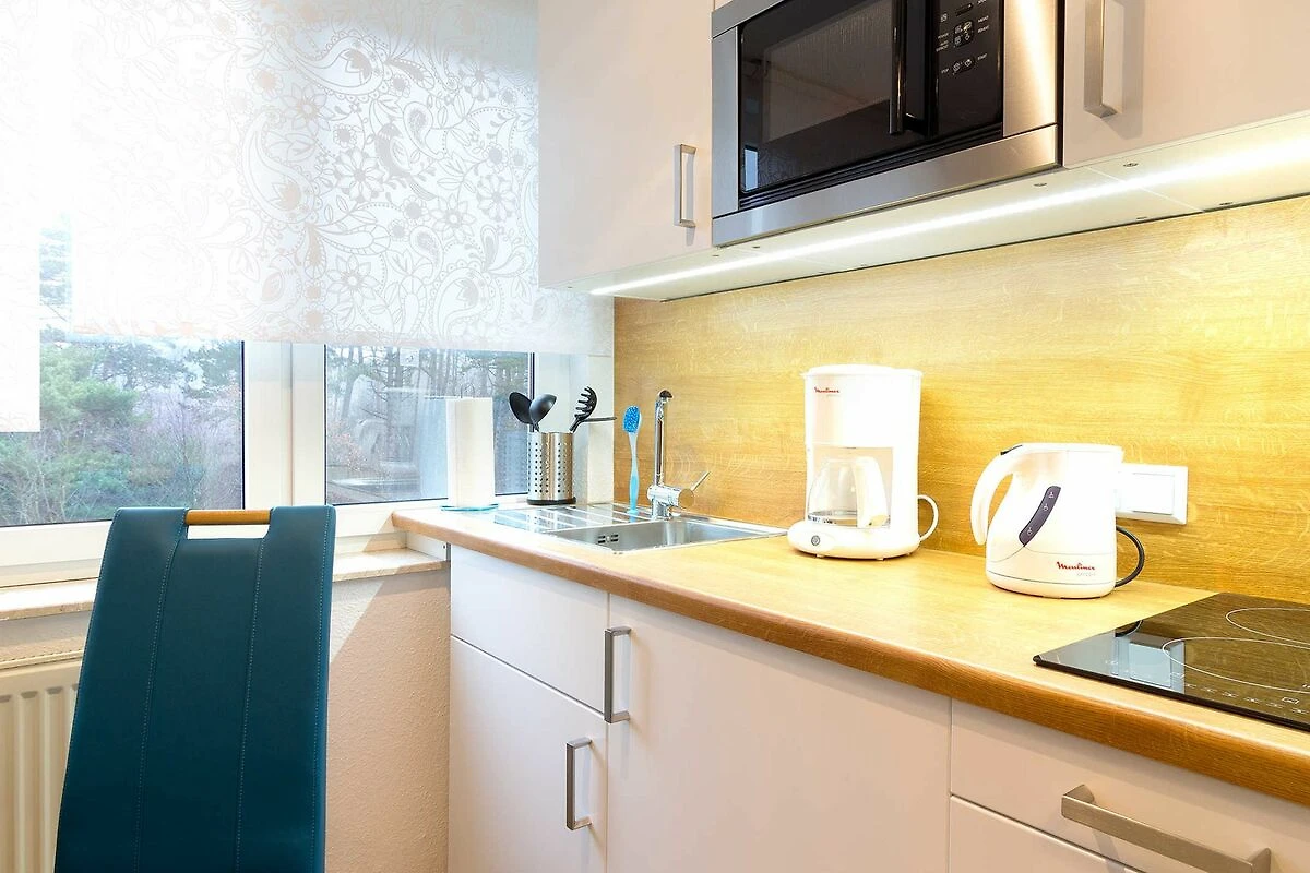 Die separate, gut ausgestattete Küche lädt zum Schlemmen und Klönen (Norddeutsches Wort für Miteinander Sprechen) ein.