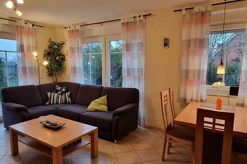 Das Ferienhaus befindet sich zentral, dennoch ruhig in direkter Nachbarschaft von Yachthafen und Kurzentrum. In nur wenigen Gehminuten sind die Cliner Quelle mit Schwimmbad, grossem Spielplatz und Fitnessangeboten zu erreichen. Der Strand in Harlesiel, wie auch die Ortsmitte von Carolinensiel liegen im näheren Umfeld.