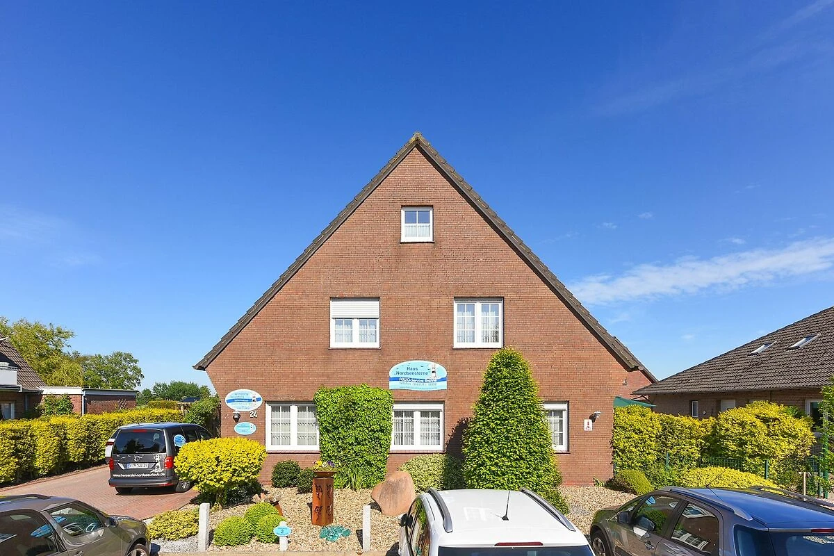 Das „Haus Nordseesterne“ liegt in einer ruhigen Anliegerstrasse ohne Hinterlandbebauung. Sie haben also teilweise freie Sicht auf Ostfrieslands saftige Marschwiesen und -felder.