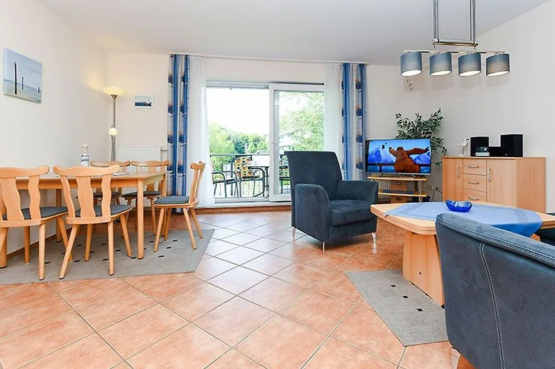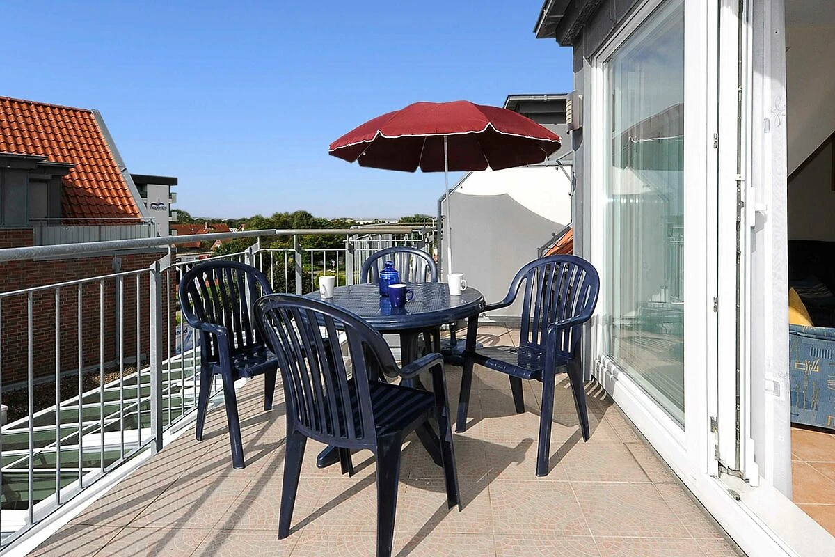 Balkone gibt es in allen Wohnungen, fast alle verdienen das Prädikat Balkonterrasse, denn sie sind gross und mit schönen Gartenmöbeln ausgestattet und sie sind windgeschützt angelegt und teilweise verfügen sie sogar über einen Strandkorb.