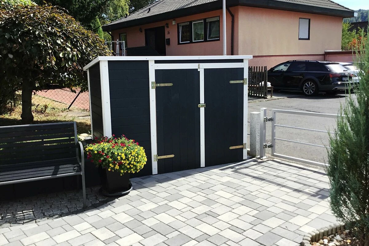 Direkt vor dem Hauseingang befindet sich eine abschliessbare Fahrradgarage.
