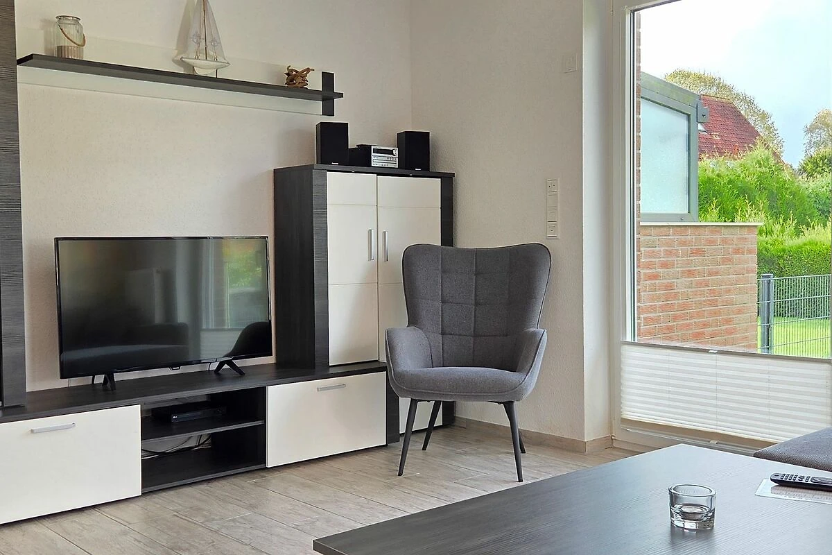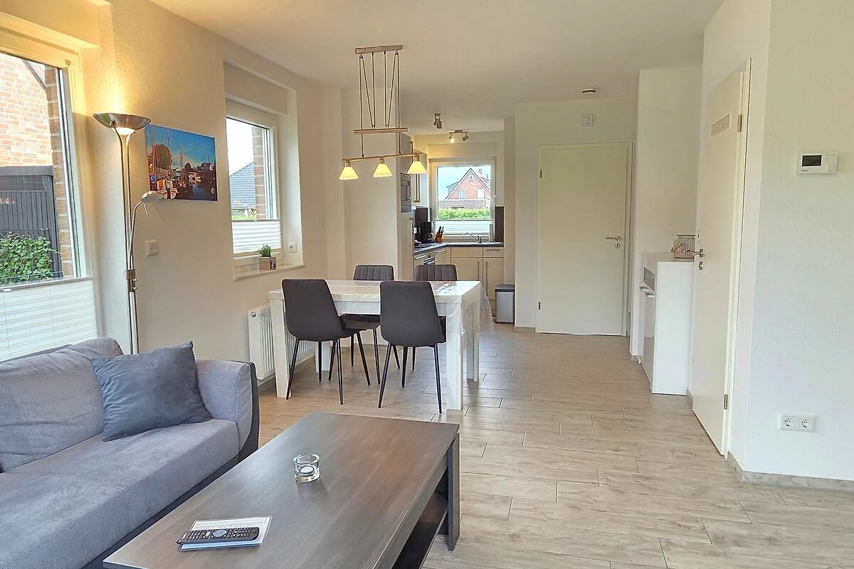 Dieses im Jahr 2018 fertiggestellte Ferienhaus befindet sich in der Nähe des Ortskerns. Von hier aus sind es nur wenige Meter zum Museumshafen. Zahlreiche Einkaufsmöglichkeiten, Restaurants und Cafés befinden sich in unmittelbarer Nähe. Der Aussenbereich des Ferienhauses verfügt über einen Garten mit möblierter Terrasse und lädt zur Erholung ein. Ein PKW-Abstellplatz befindet sich direkt vor dem Haus.