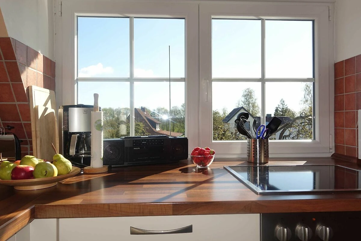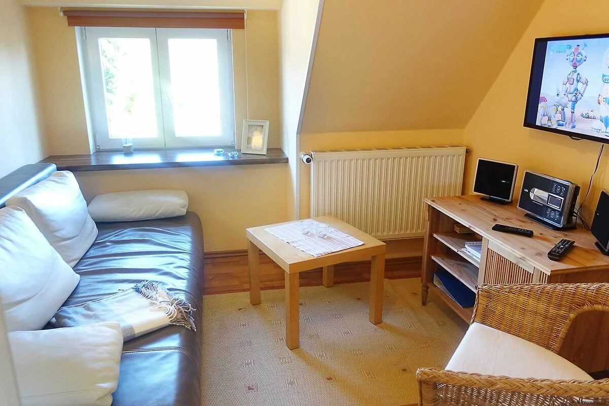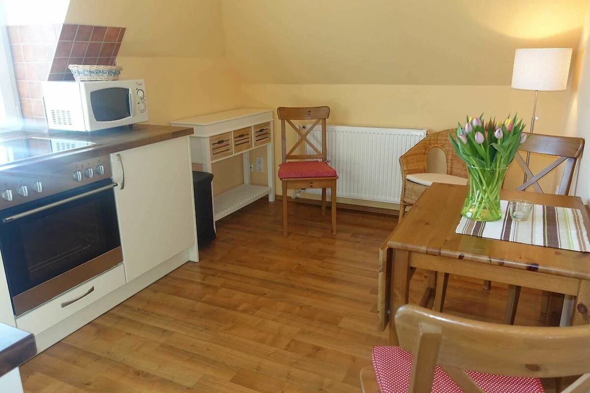 Charmant eingerichtet und gut ausgestattet erwartet die Ferienwohnung Haus Annemarie II mit einem herrlichen Blick in den Garten bis zu 2 Gäste im Obergeschoss des alten Reethauses. Die freiliegenden Deckenbalken und die farblich stimmigen Fussböden in Laminat und Fliesen sorgen für ein behagliches Ambiente.
