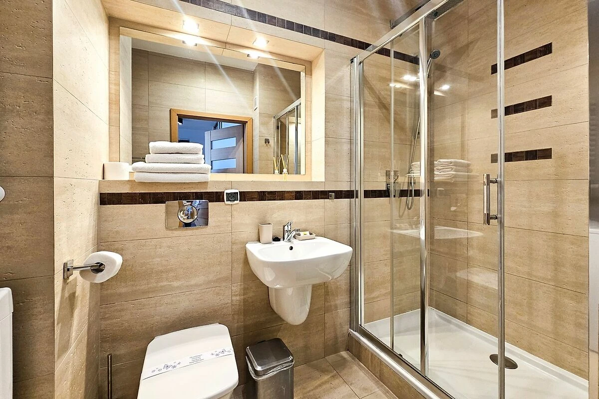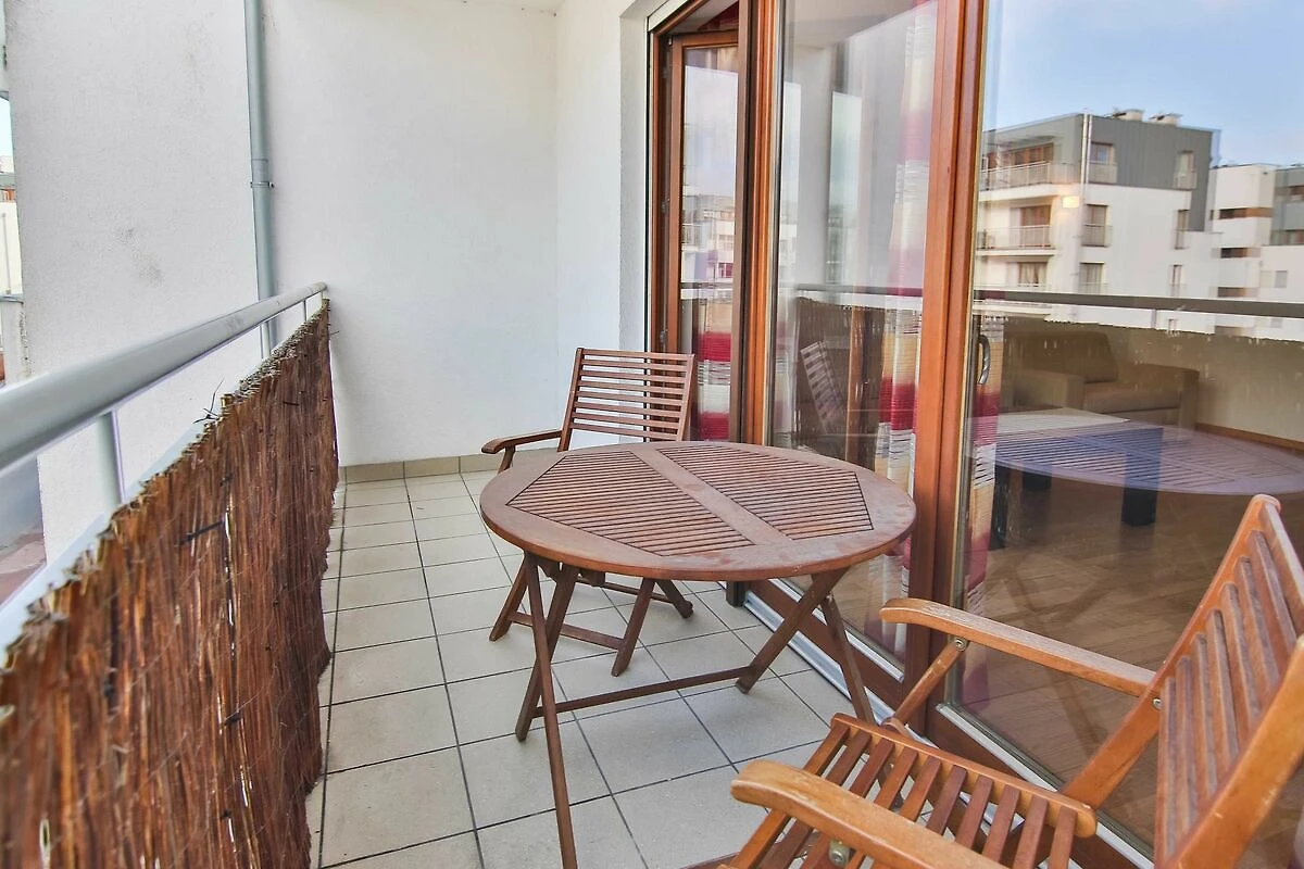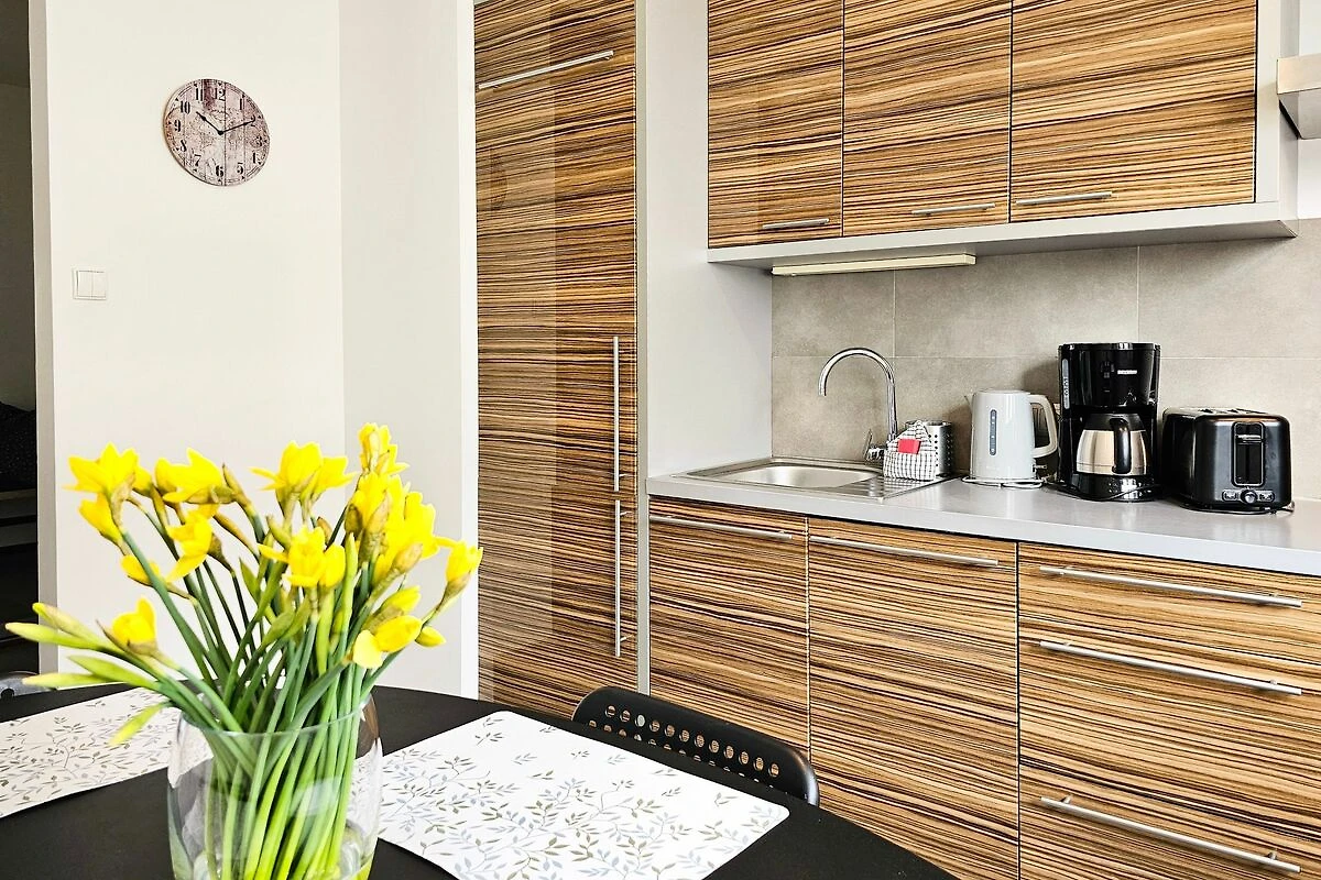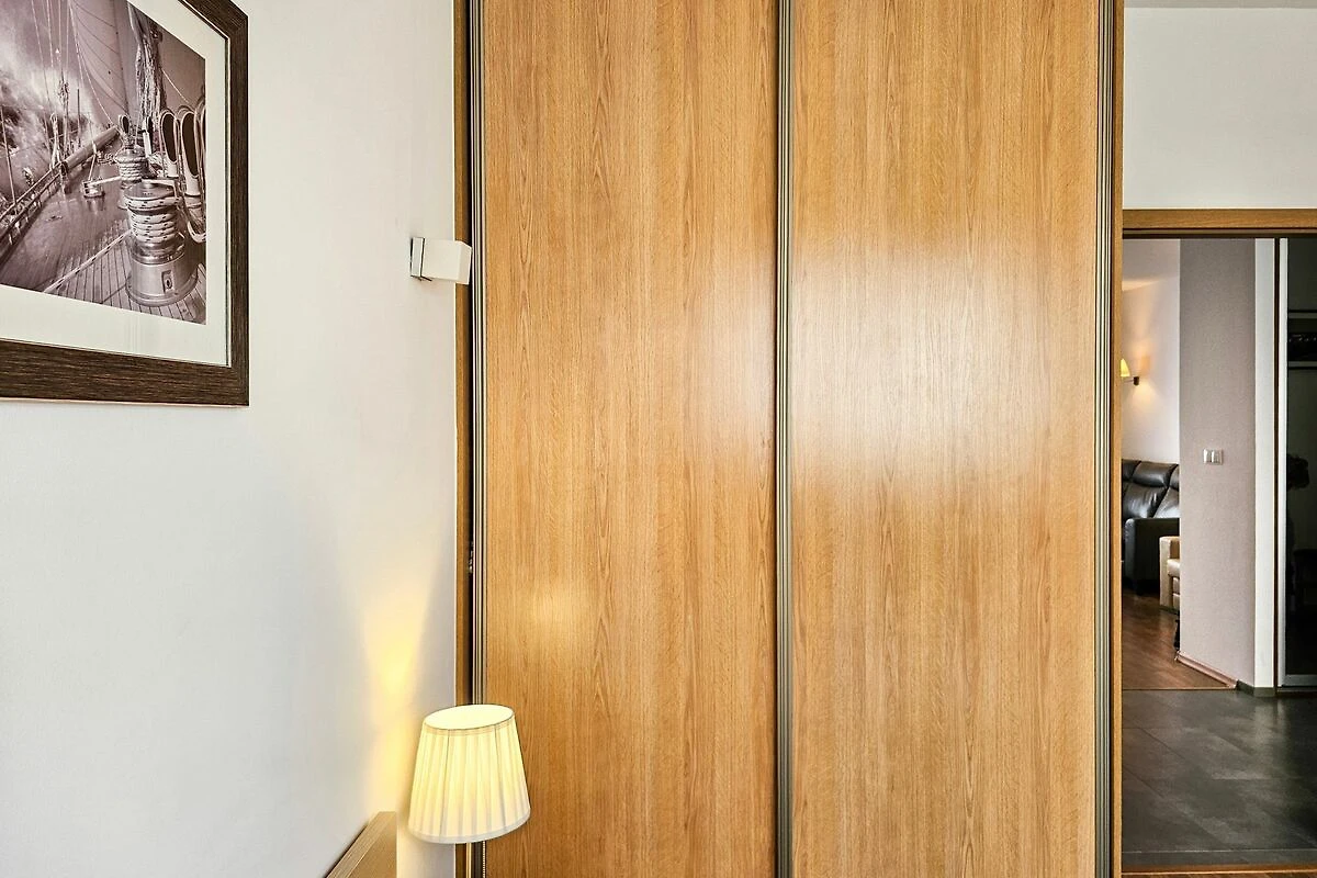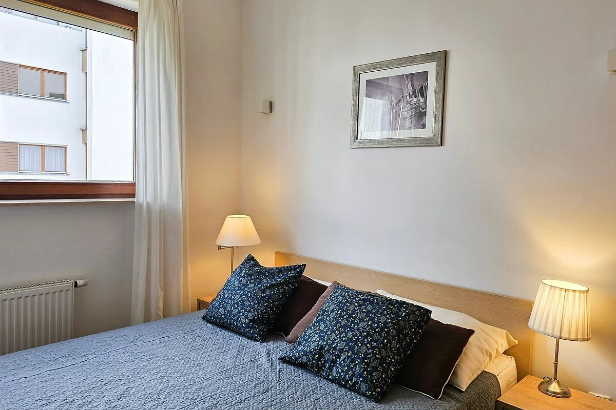Eine geräumige (56m2) 2-Zimmer-Ferienwohnung im zweiten Stock eines Gebäudes im Wohngebiet Platan. Sie besteht aus einem Wohnzimmer mit Balkon, einem Schlafzimmer, Badezimmer und einer separaten Küche (die Küche ist kein abschliessbarer Raum).