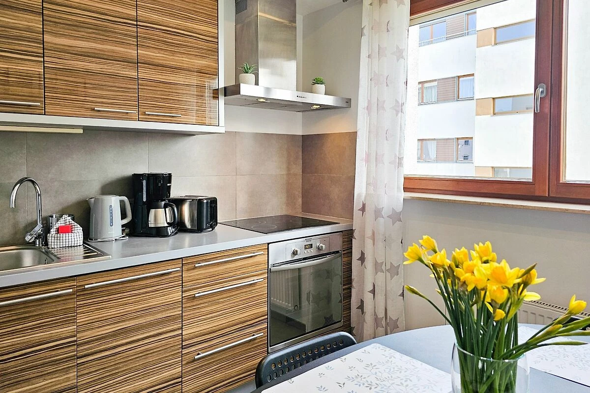 In der Umgebung befinden sich Geschäfte, Restaurants und der von den Touristen gern besuchte Grenzmarkt (Polen Markt). Die Entfährnung zum Strand beträgt ca. 1,1km, zum Grenzübergang 1,5km und zum Stadtzentrum ungefähr 0,5km. An der Malczewskiego Strasse liegt ein moderner, eingezäunter Spielplatz, ein Basketballplatz und eine grüne Freizeitanlage.