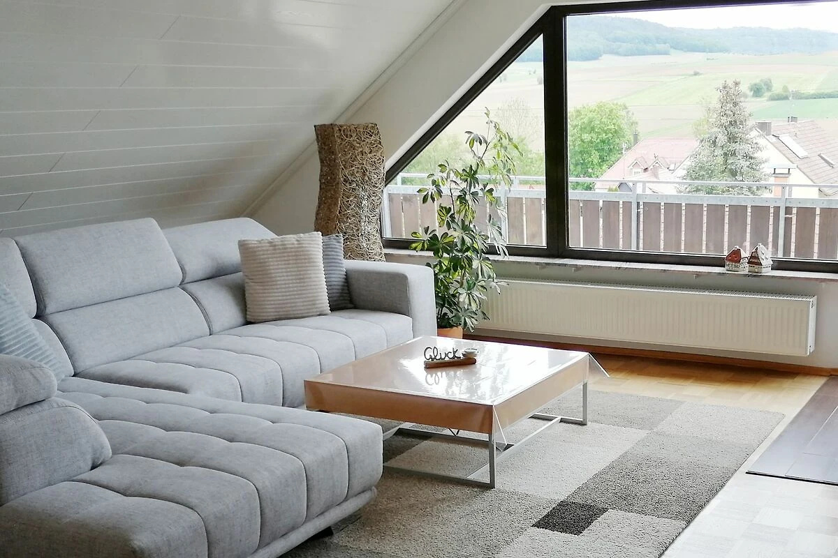 Unsere Ferienwohnung Himmelblau ist circa 95 qm gross und befindet sich im 1. Stock.