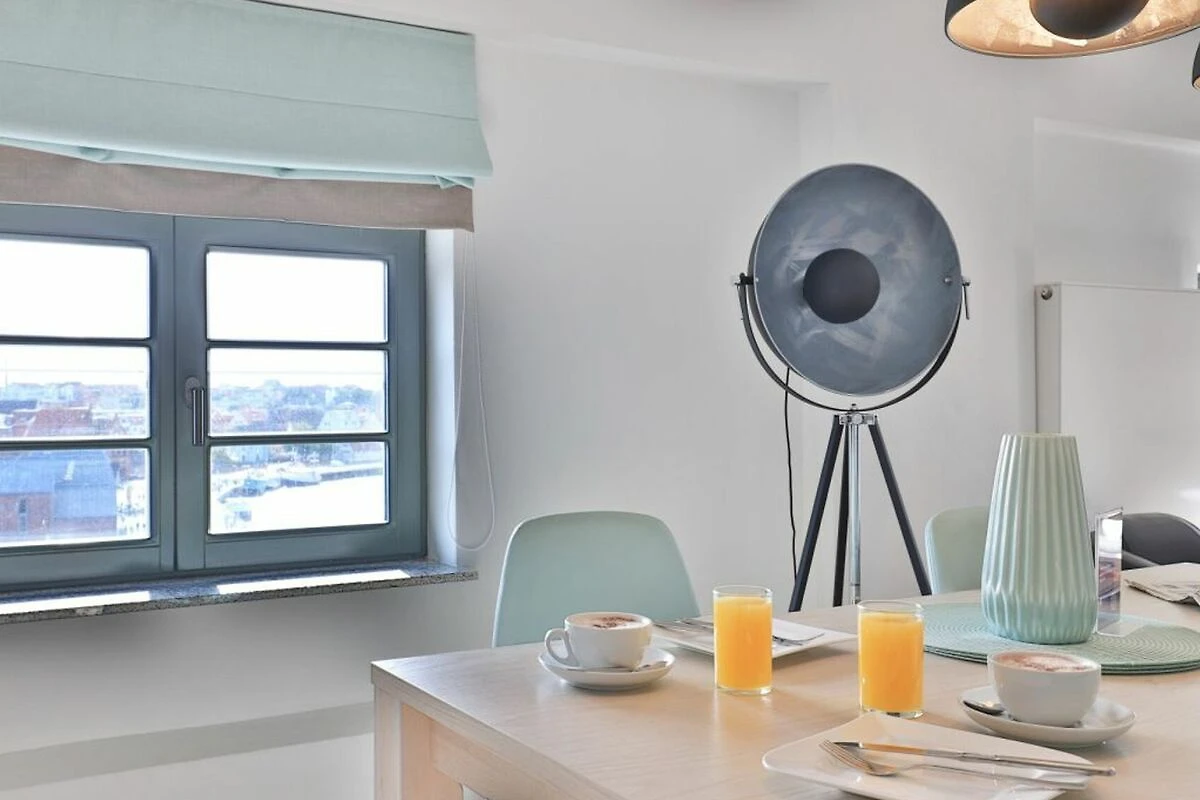 Appartementhaus mit 48 Appartements. Das 54 m² grosse 2- Zimmer- Appartement befindet sich in der 6. Etage, welche leicht durch den Lift zu erreichen ist. Unterteilt ist dieses exklusive Appartement in einen hellen und geräumigen Wohn- und Essbereich mit integrierter voll ausgestatteter Küchenzeile sowie einem separatem Schlafzimmer mit Doppelbett. Ein gemütliches Sofa und ein Flachbild- TV laden