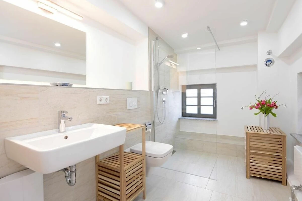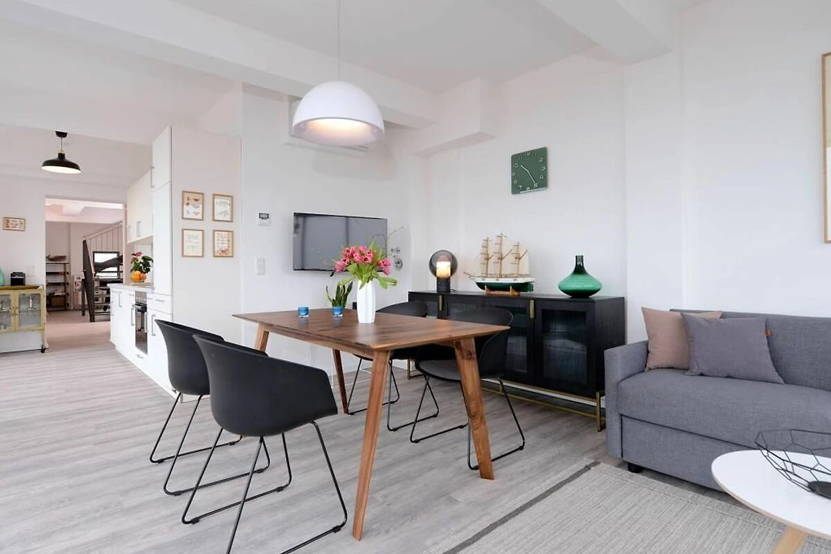 Der Wohn-/ Essbereich mit Fernseher ist modern eingerichtet. Die geschickt integrierte Küche ist komplett mit Geschirrspüler, Mikrowelle, Kaffeemaschine, Wasserkocher und vielem mehr ausgestattet. Die 2 separaten Schlafzimmer sorgen für erholsame Nächte. Das Badezimmer mit Dusche ist sehr elegant ausgestattet. Bei Anreise sind 2 Betten bezogen und Handtücher liegen für Sie bereit. WLAN steht Ihnen kostenfrei zur Verfügung. In unmittelbarer Nähe sind öffentliche Parkplätze vorhanden