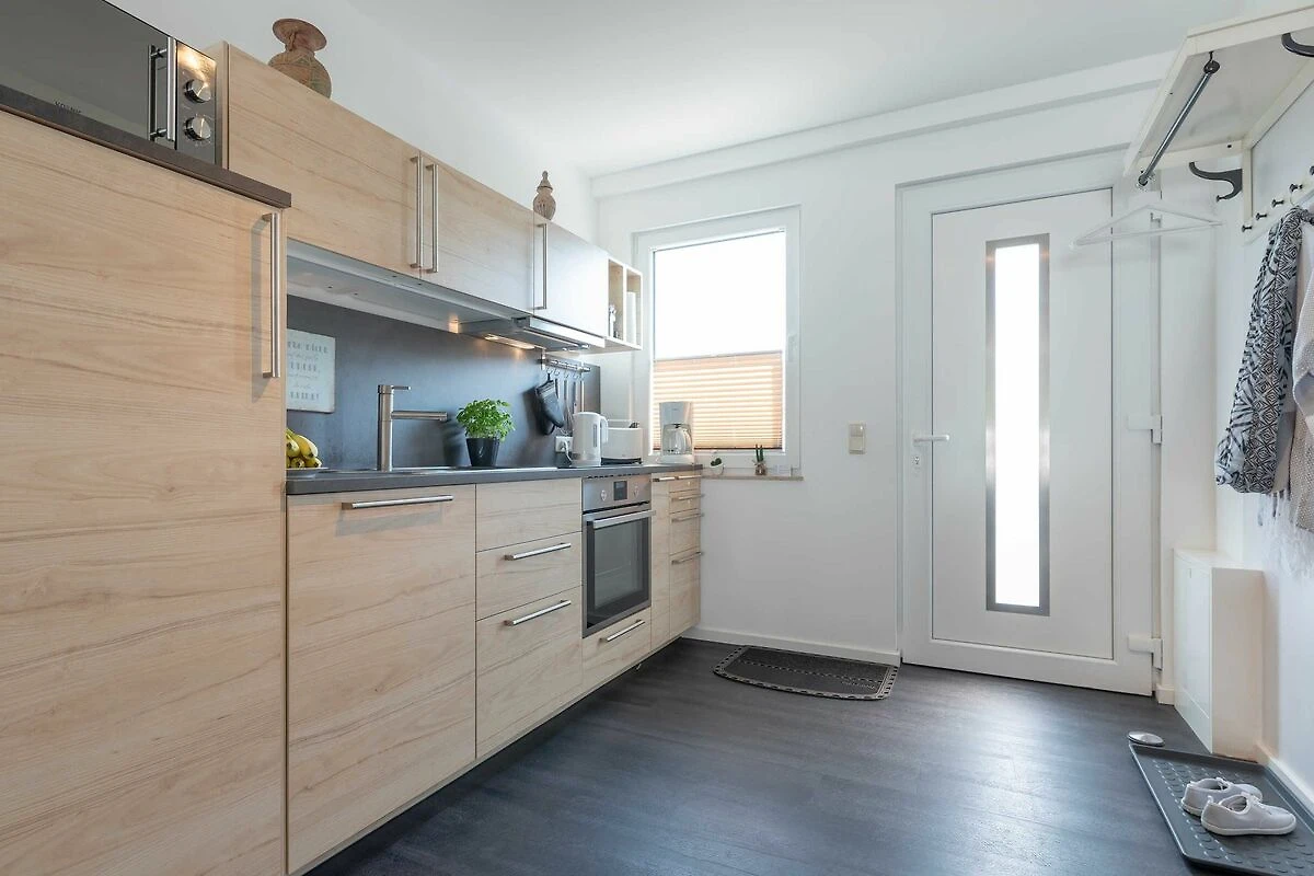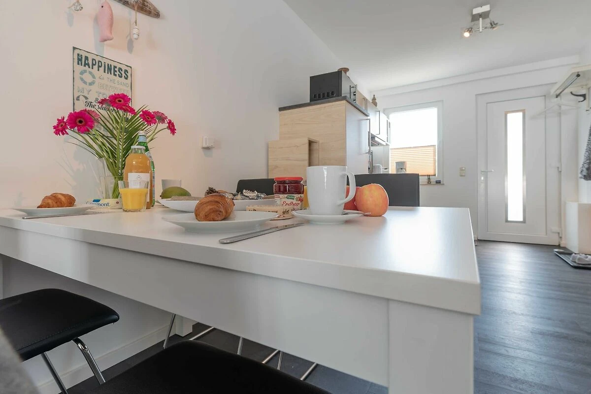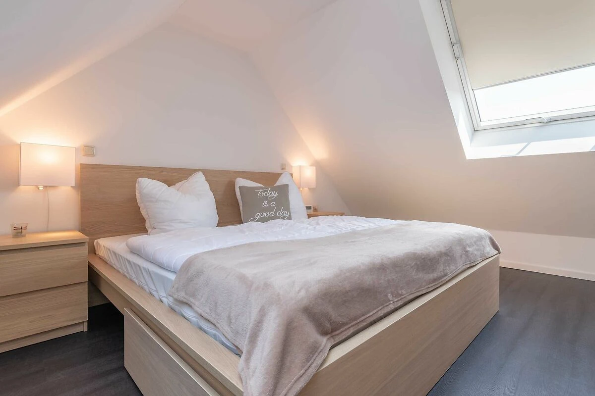 Nur etwa 500 m vom schönen Naturstrand entfernt und in ruhiger Lage, befindet sich das 2017 neuerbaute Ferienobjekt mit individuell eingerichteten Ferienwohnungen. Unsere Ferienwohnung liegt im ersten Obergeschoss und ist exklusiv über eine grosszügige Gittertreppe erreichbar. Alle Räume sind mit einer Fussbodenheizung ausgestattet. Unsere Gäste finden hier zu jeder Jahreszeit Komfort und Behaglichkeit und dementsprechend die Gelegenheit zur Ruhe und Entspannung. Die hochwertige modern eingerichtete Ferienwohnung verfügt über eine Gesamtwohnfläche von ca. 55 Quadratmetern.