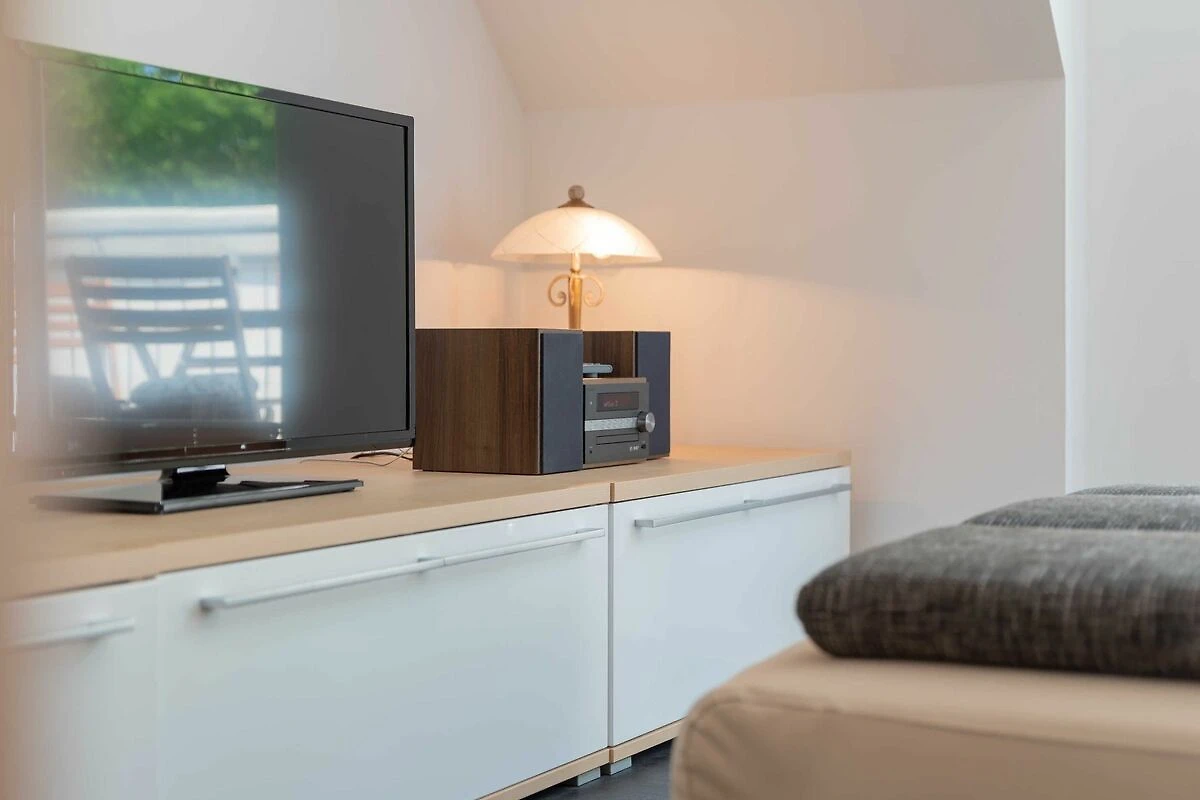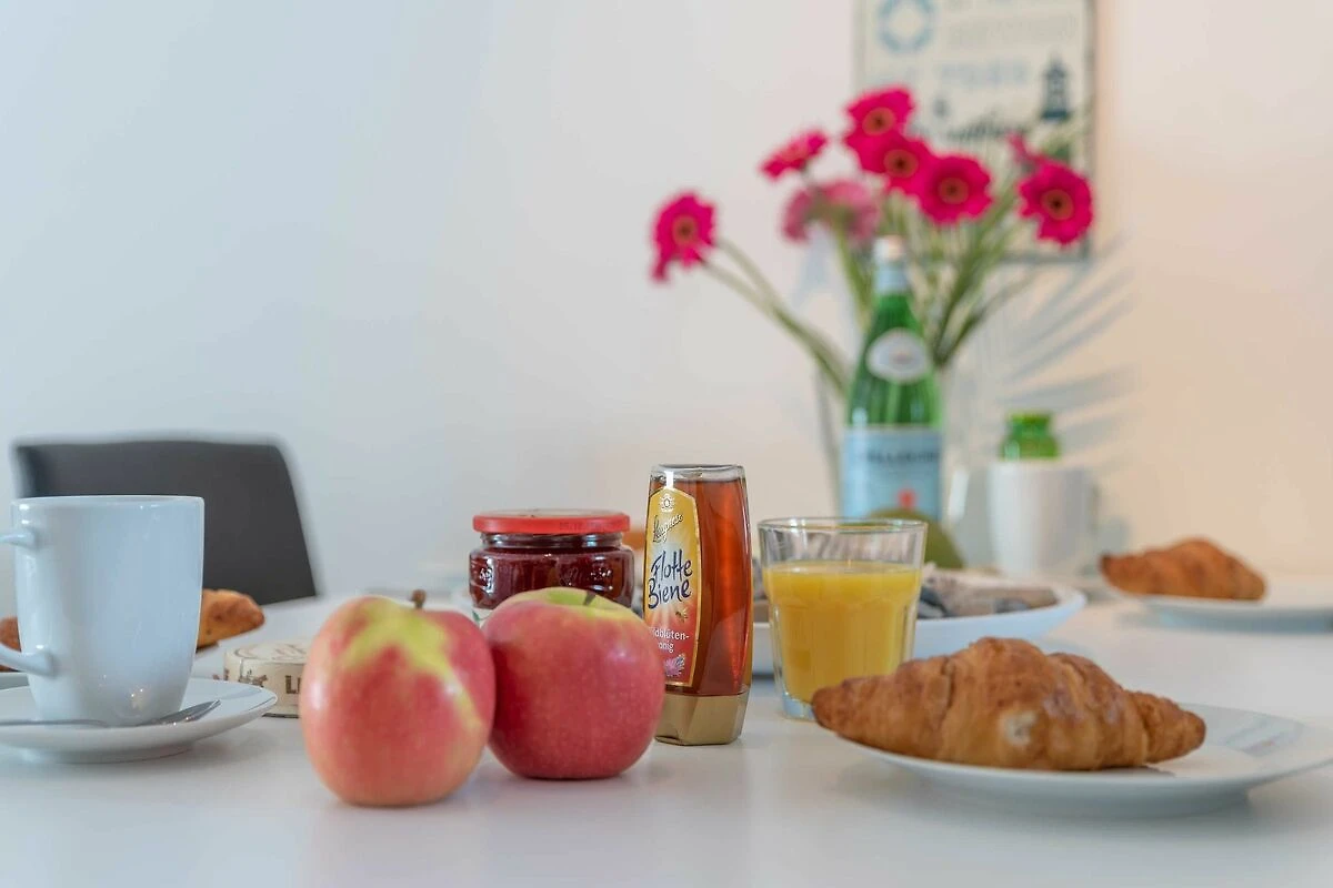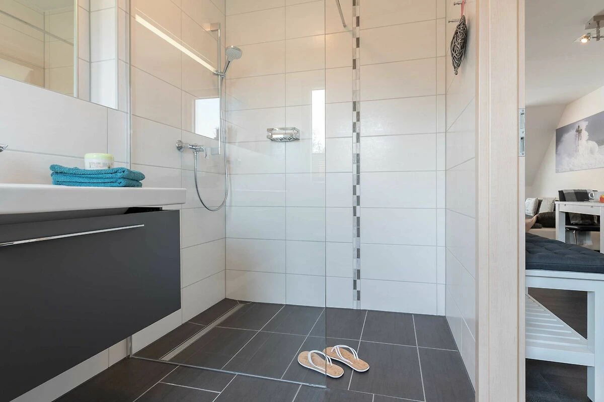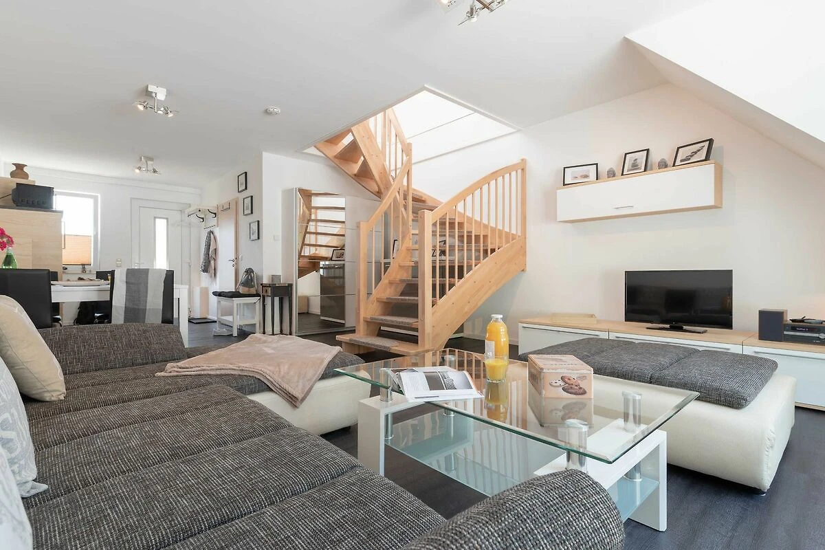 Nur etwa 500 m vom schönen Naturstrand entfernt und in ruhiger Lage, befindet sich das 2017 neuerbaute Ferienobjekt mit individuell eingerichteten Ferienwohnungen. Unsere Ferienwohnung liegt im ersten Obergeschoss und ist exklusiv über eine grosszügige Gittertreppe erreichbar. Alle Räume sind mit einer Fussbodenheizung ausgestattet. Unsere Gäste finden hier zu jeder Jahreszeit Komfort und Behaglichkeit und dementsprechend die Gelegenheit zur Ruhe und Entspannung. Die hochwertige modern eingerichtete Ferienwohnung verfügt über eine Gesamtwohnfläche von ca. 55 Quadratmetern.