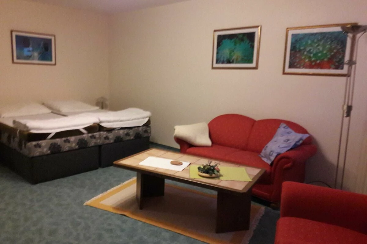 Die Ferienwohnung befindet sich im Souterrain eines Einfamilienhauses mit separatem Eingang, in einer ruhigen Wohnsiedlung. Im Garten steht Ihnen eine Sitzecke mit Gartenmöbeln und Grill zur Verfügung. Zur Ferienwohnung gehört auch die kostenlose Nutzung eines Parkplatzes sowie die Benutzung eines Ruderbootes.