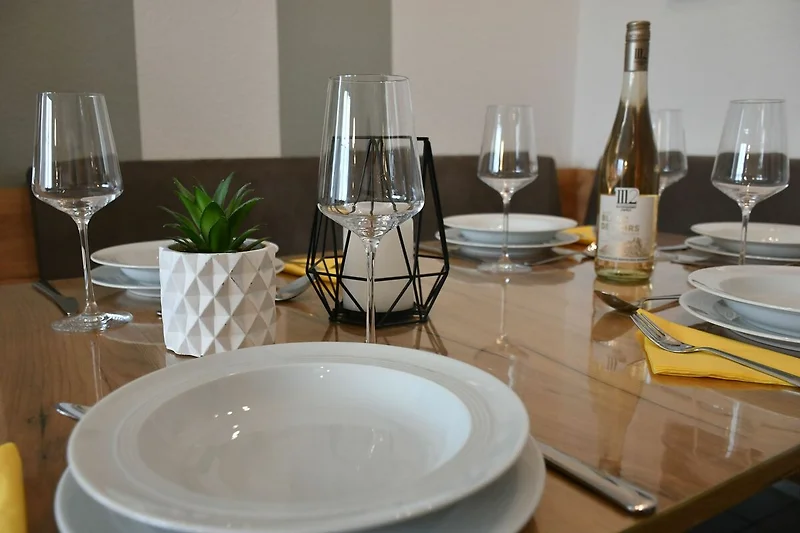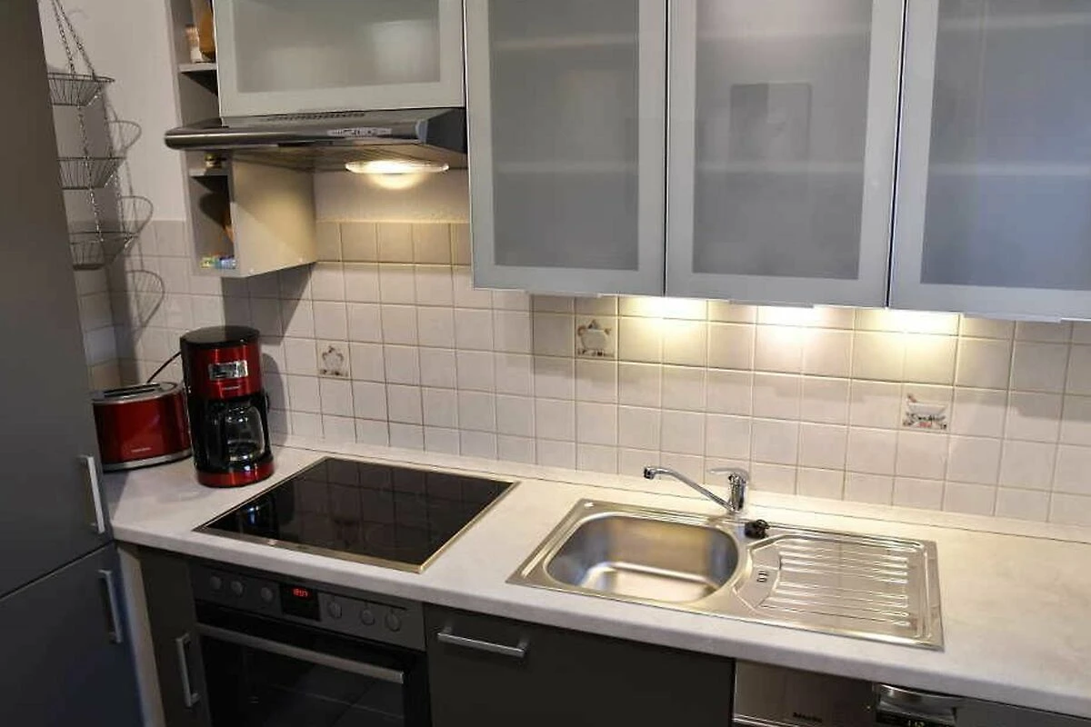 Die Küche ist modern und komplett eingerichtet. Egal ob Sie nun einen Kuchen backen, ein komplettes Menü kochen oder nur eine Pizza aufbacken möchten.