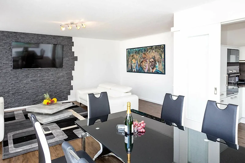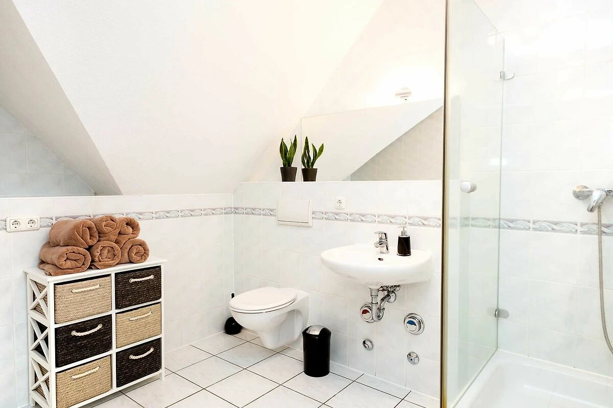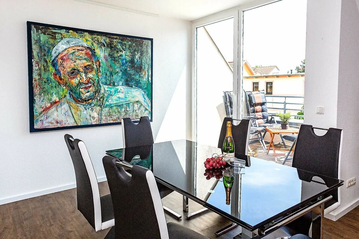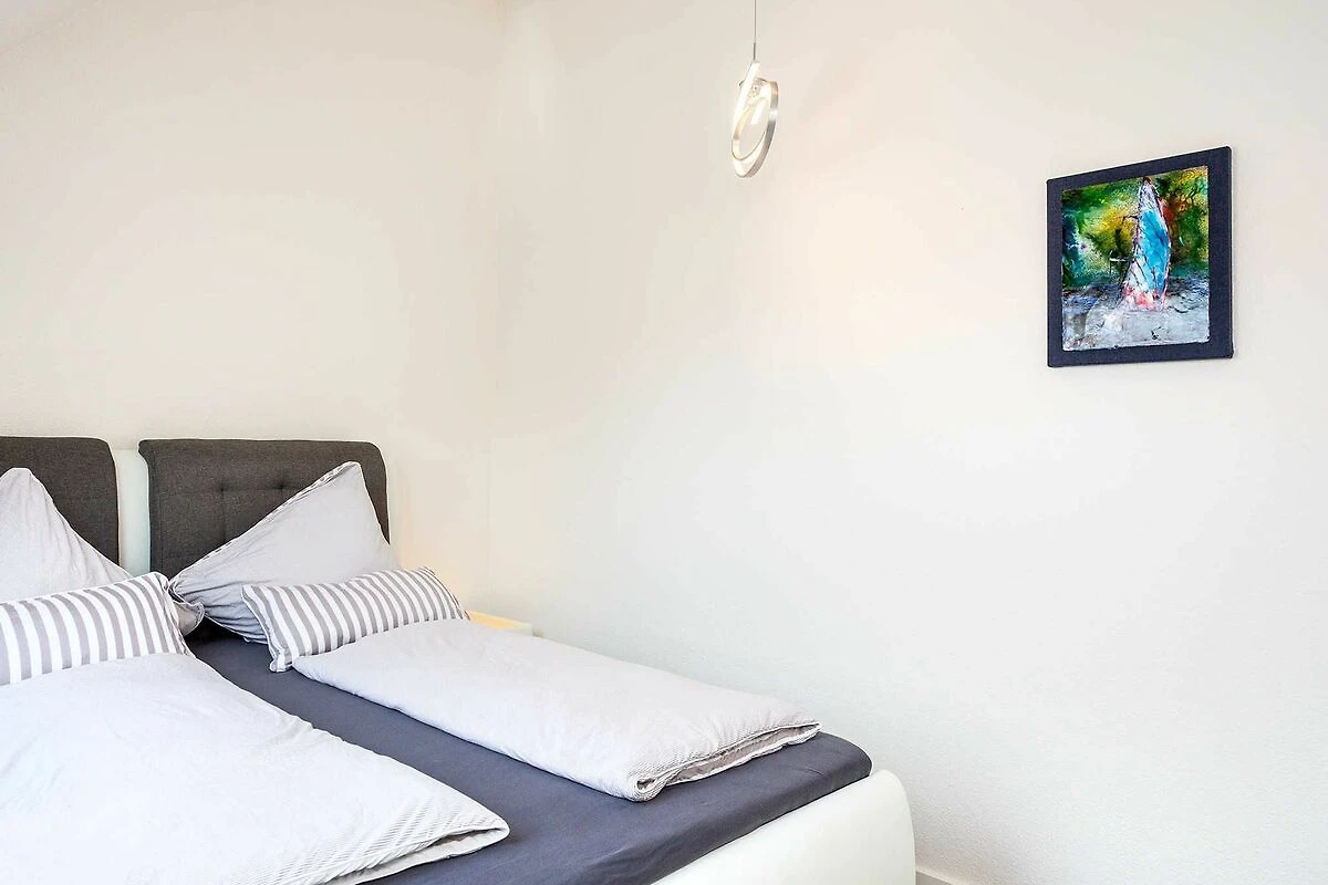 Direkt am Yachthafen von Waren, finden Sie eine einzigartige Ferienwohnung. Auf zwei Etagen verteilt ist diese Wohnung perfekt für 4 bis 8 Personen geeignet. In der unteren Etage befindet sich das Duschbad sowie eines der zwei Schlafzimmer. Besonders jedoch ist das Wohnzimmer mit Esstisch und hervorragender Küche, bei deren Einricht an alles gedacht wurde. Nicht nur modern sondern durchdacht ist das Gesamtkonzept der Einrichtung. Ganz besonders sind die zwei Bilder, die von einem Künstler der Region geschaffen wurden.