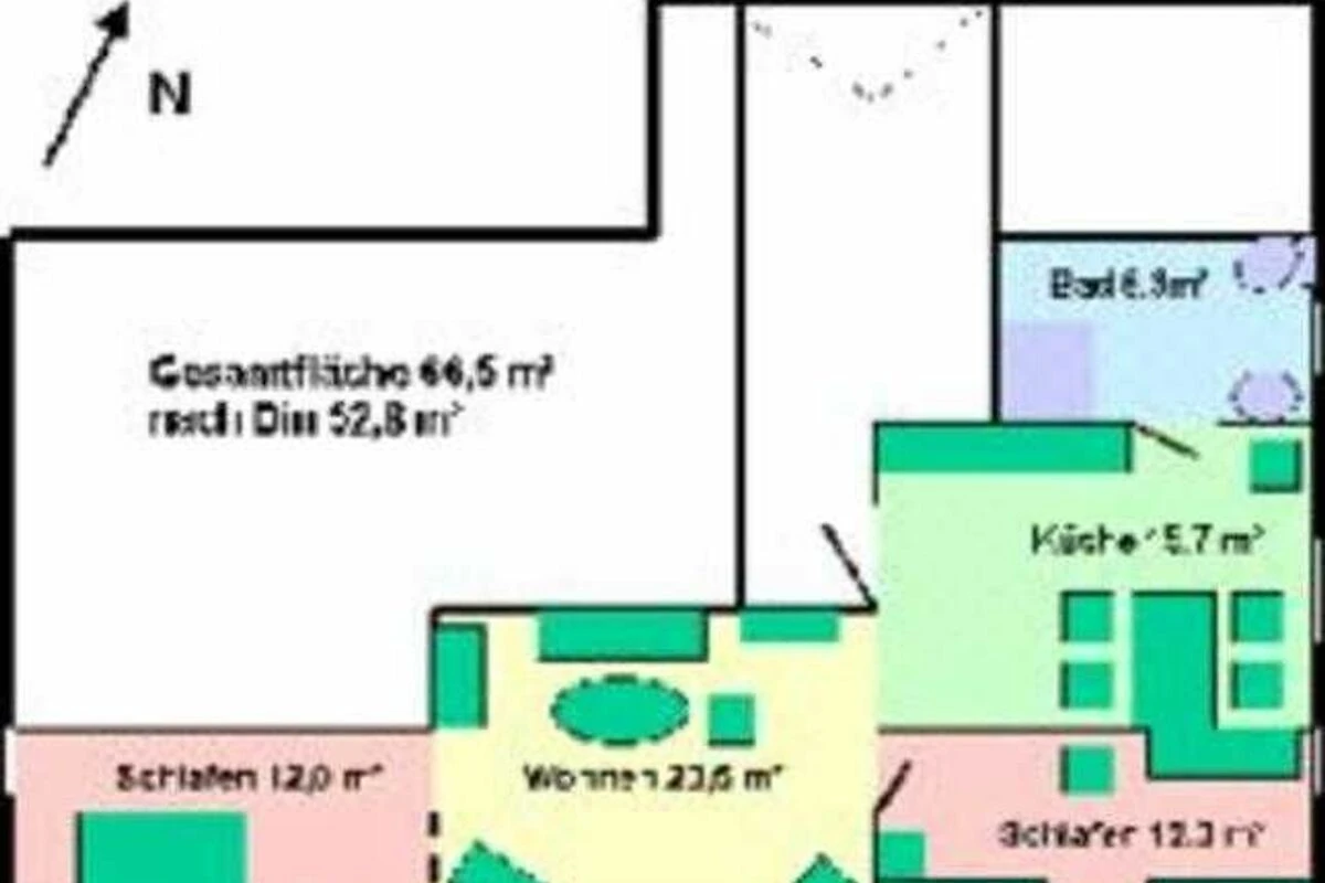 Mit rund 55m² Wohnfläche bietet die Wohnung Platz für bis zu vier Personen. Sie verfügt über: