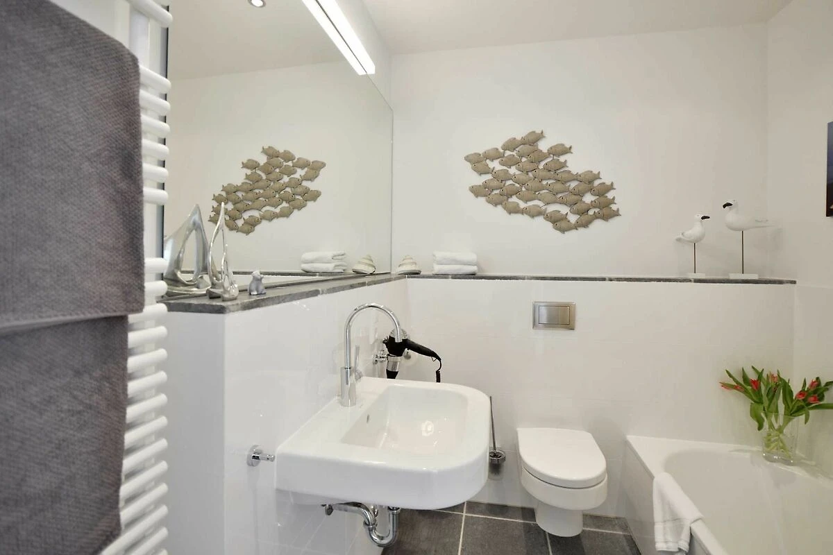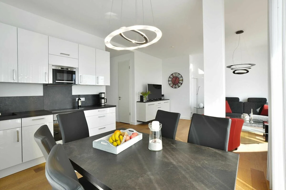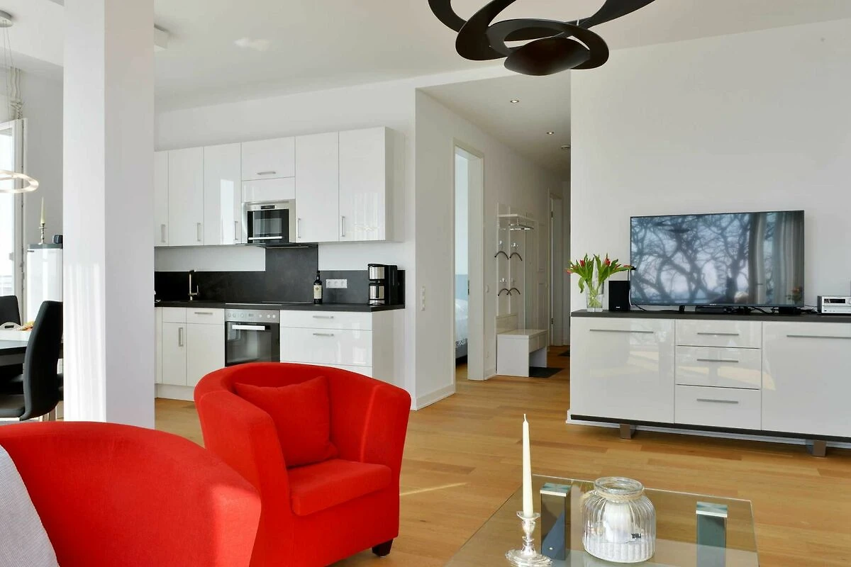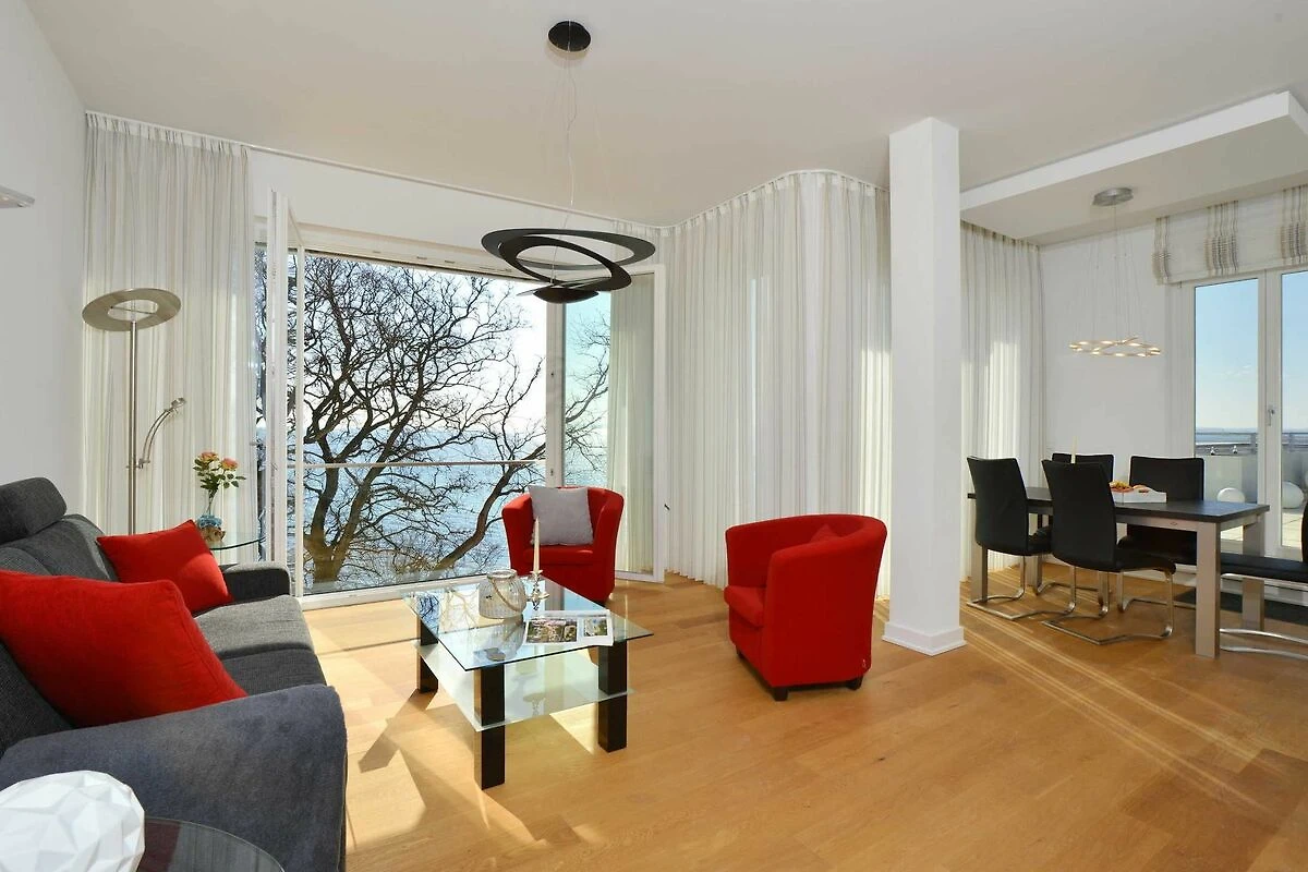 Auch das grosse, geschmackvoll eingerichtete Wohnzimmer mit Ostseeblick auf der gesamten Breite begeistert das ganze Jahr über. An kalten Tagen können Sie in der wohnungseigenen Sauna, die über einen zusätzlichen Infrarotstrahler verfügt, entspannen.
