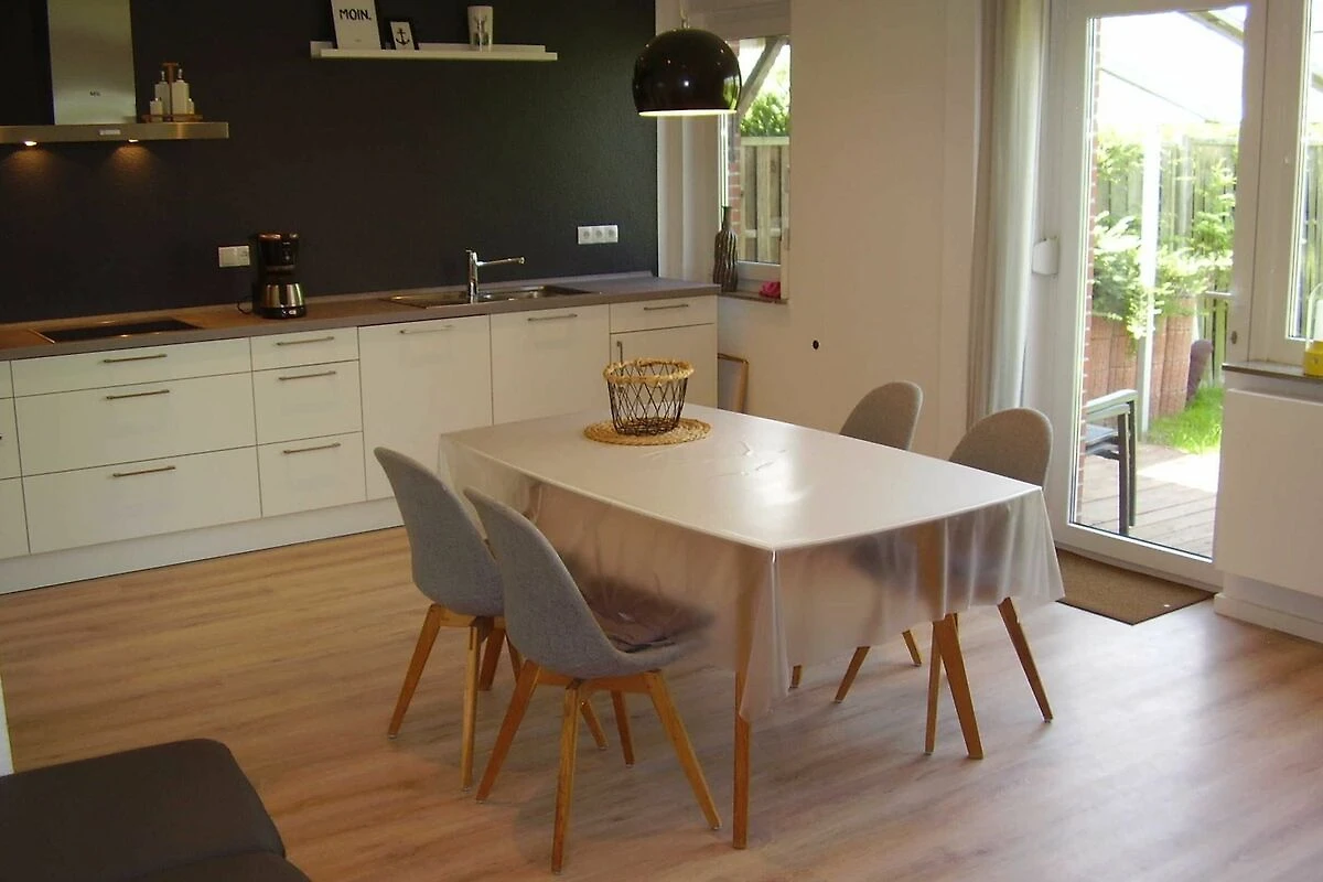 Der Ferienbungalow liegt direkt hinter dem Deich in unmittelbarerer Nähe zum Meer im Nordseebad Dornumersiel.