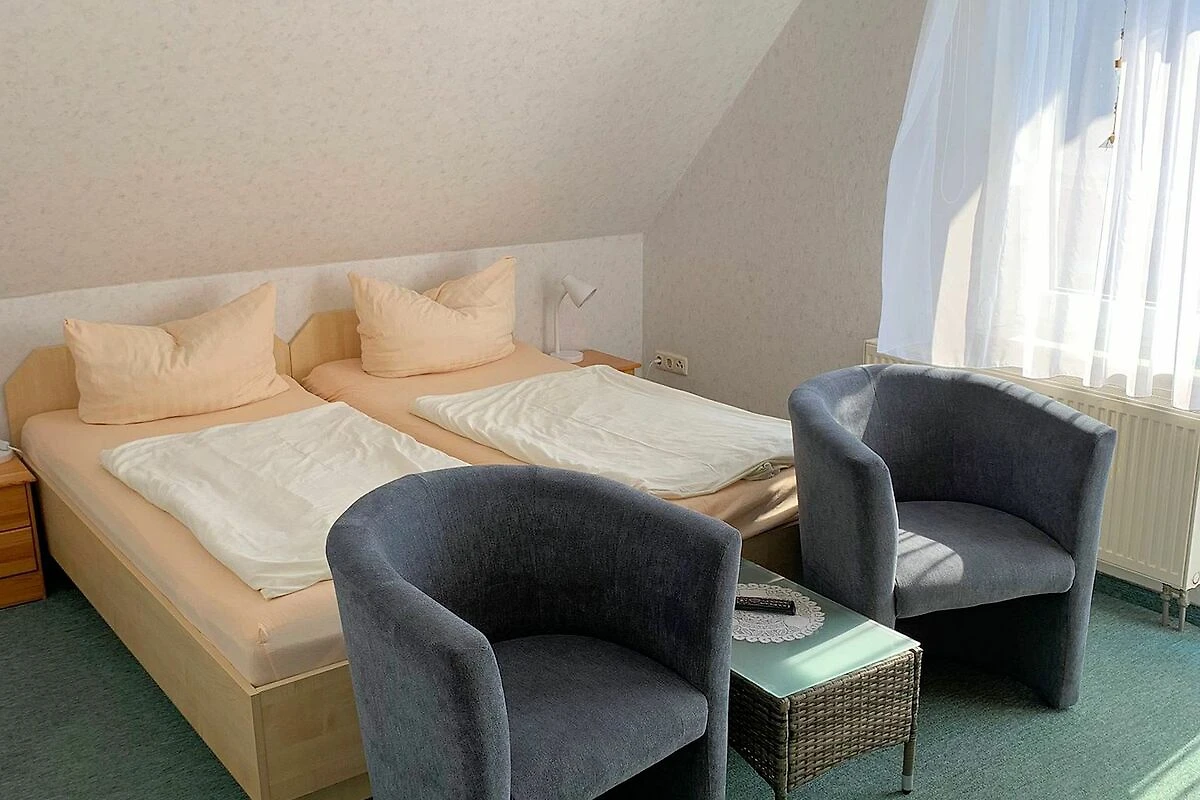 • 1 Schlafraum für 2 Personen (Doppelbett) , der 2. Schlafraum ist für 3 Personen geeignet (Einzelbetten), auf Wunsch ist für ein Kleinstkind ein Kinderbett vorhanden