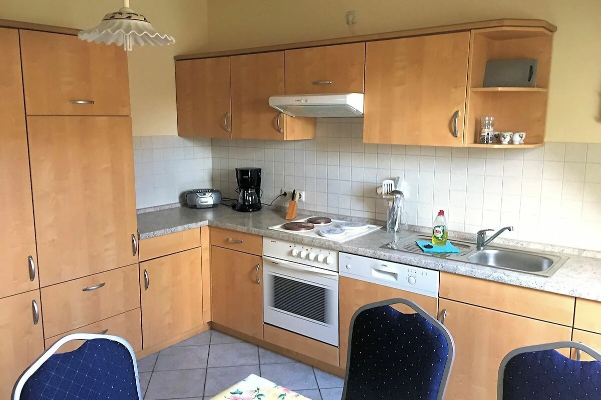 • die Küche ist ausgestattet mit Sitzecke ( Backofen, Kühlschrank, Gefrierfach, Spülmaschine )