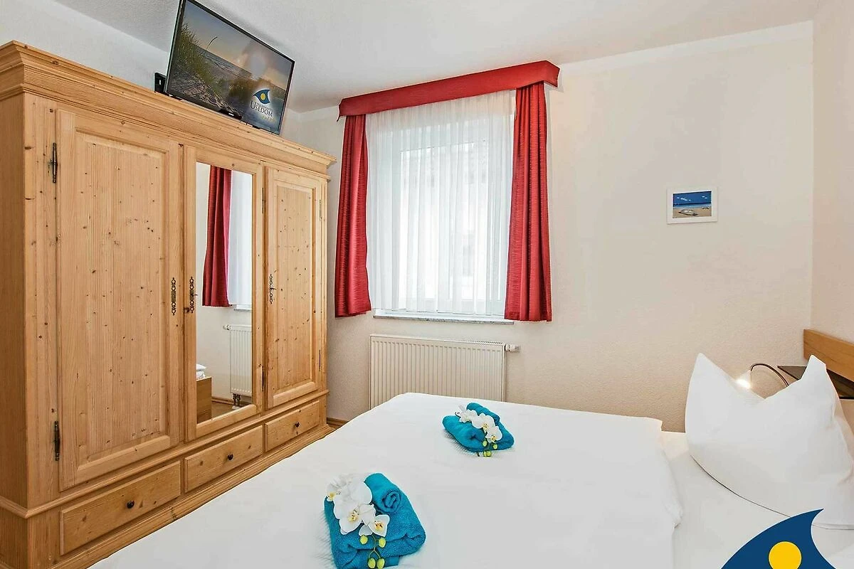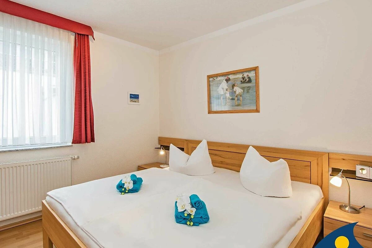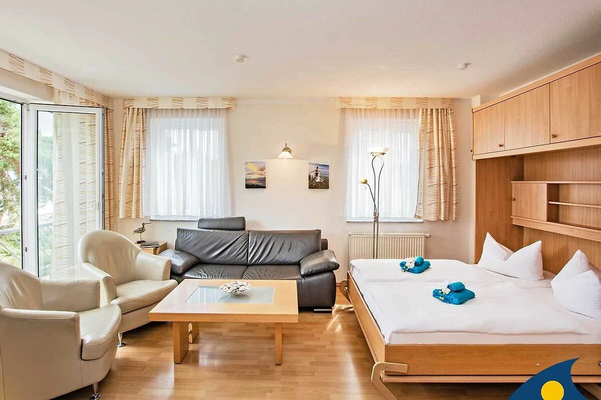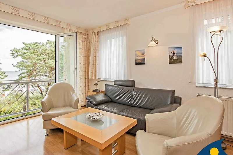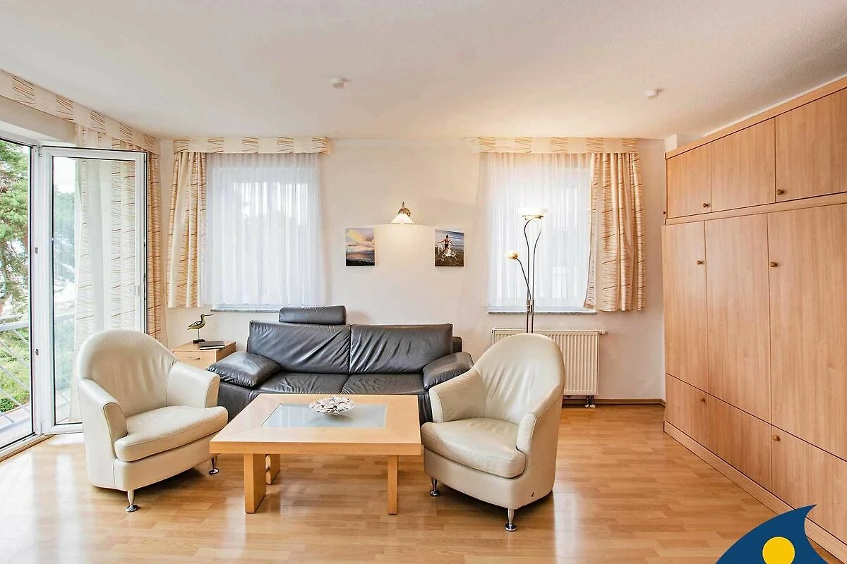 Dieses modern und liebevoll eingerichtete Appartement in der 4. Etage bietet einen fantastischen Blick auf die Ostsee. Im Wohnzimmer befindet sich ein komfortables Schrankbett mit Federkernmatratze für die dritte und vierte Person. Das Schlafzimmer ist mit einem zusätzlichen Fernseher ausgestattet. Ein CD-Player steht ebenfalls zur Verfügung.