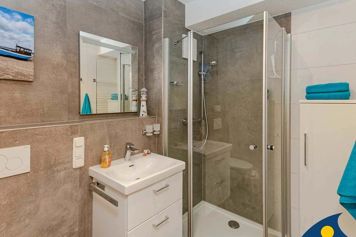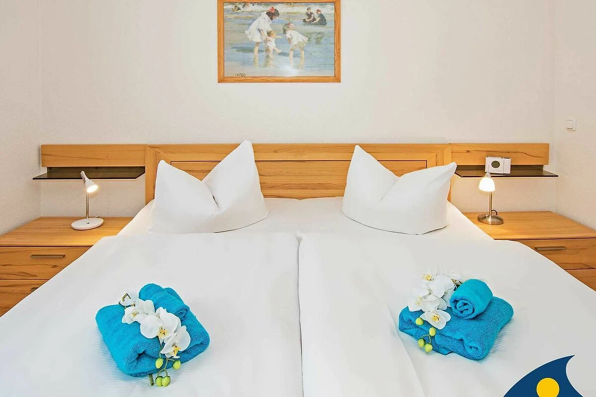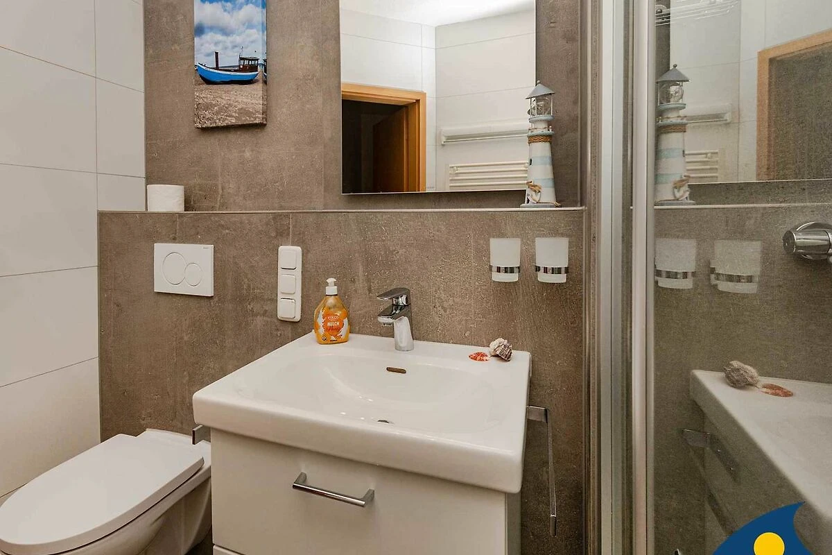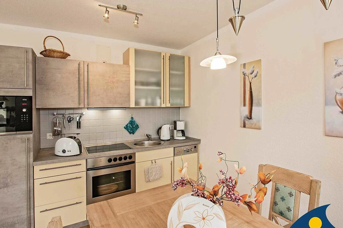 Dieses modern und liebevoll eingerichtete Appartement in der 4. Etage bietet einen fantastischen Blick auf die Ostsee. Im Wohnzimmer befindet sich ein komfortables Schrankbett mit Federkernmatratze für die dritte und vierte Person. Das Schlafzimmer ist mit einem zusätzlichen Fernseher ausgestattet. Ein CD-Player steht ebenfalls zur Verfügung.