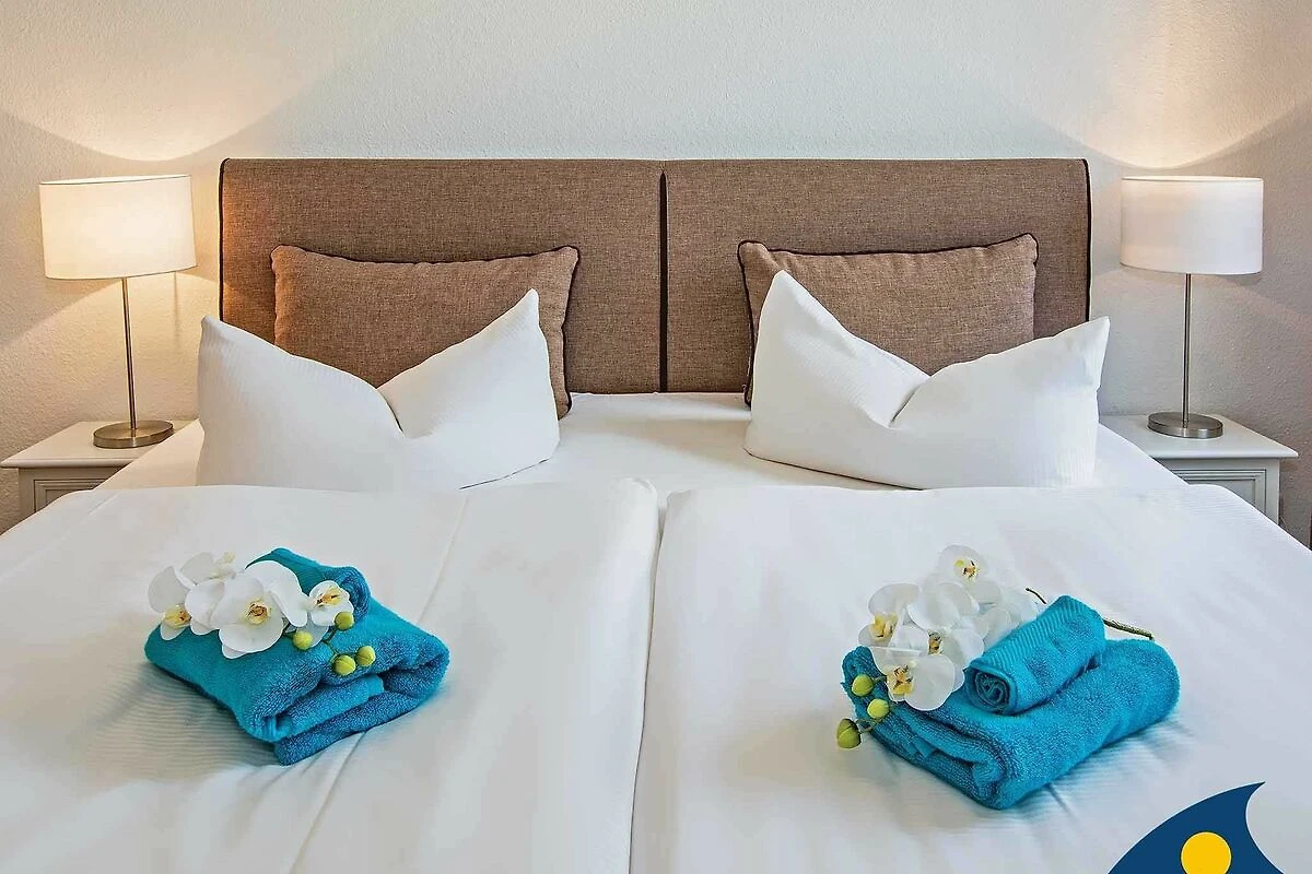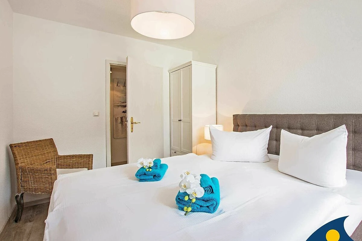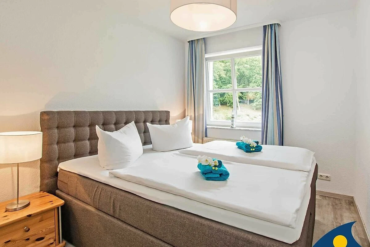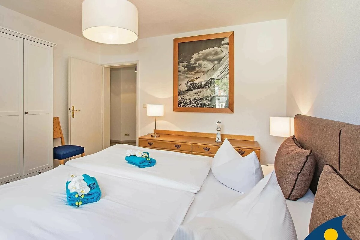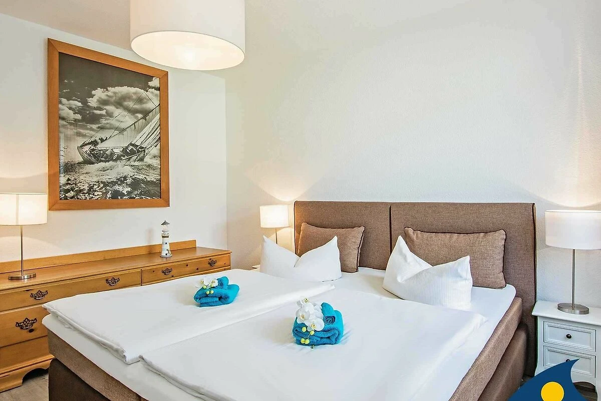 Die Schlafzimmer sind ruhig zur Hofseite gelegen und bieten neben einem gemutlichen Schlafplatz genugend Stauraum fur Ihre Urlaubsgarderobe. Die Betten sind 1,80 m x 2,00 m und 1,60 m x 2,00 m gross.