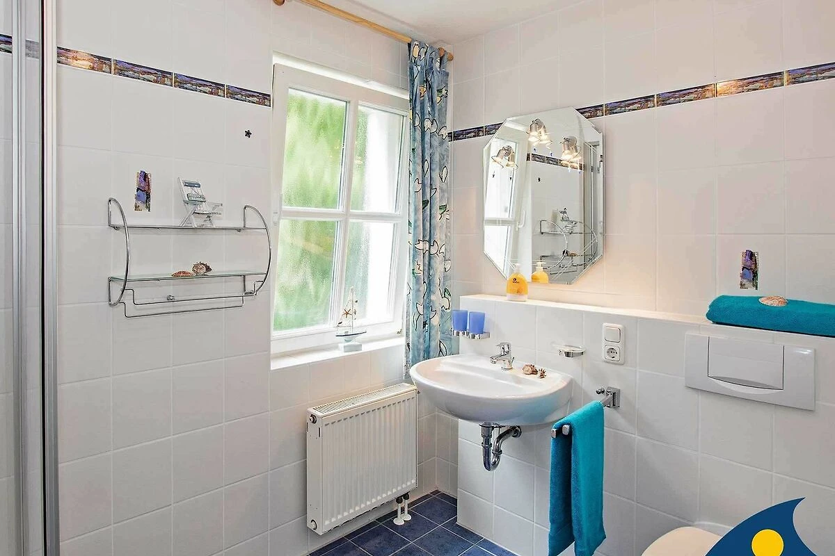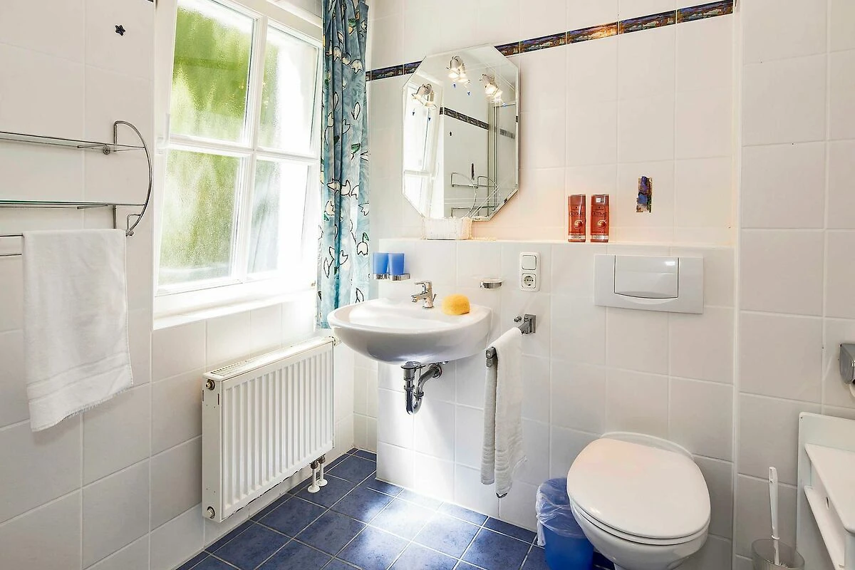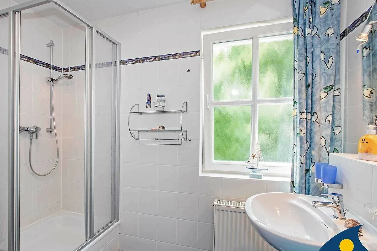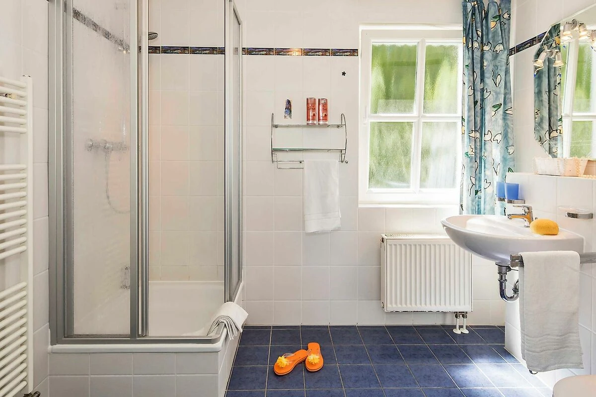 Das Badezimmer mit Dusche und WC ist sehr geräumig und somit ein wahres Familienbad.