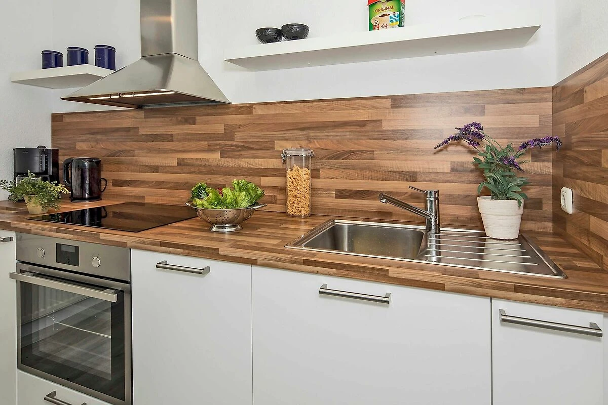Die separate Kuche lädt zum gemeinsamen Kochen ein und ist mit einem Geschirrspüler ausgestattet.