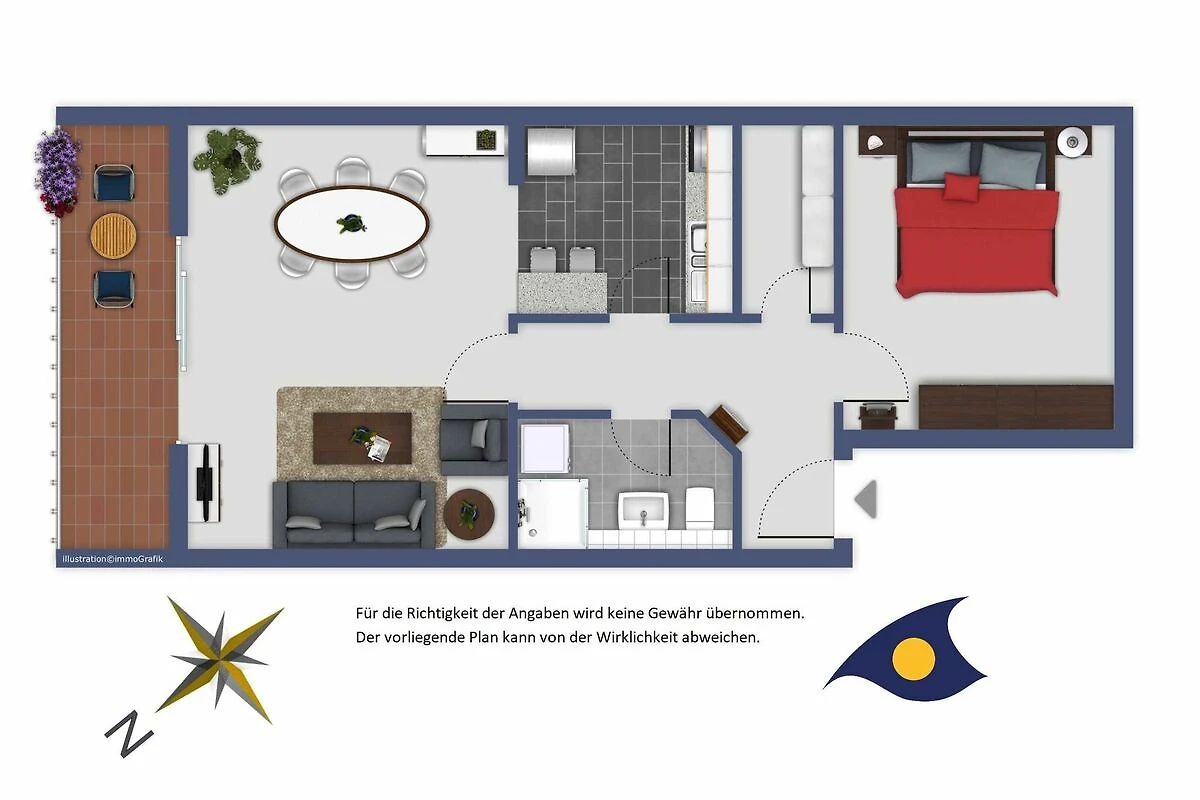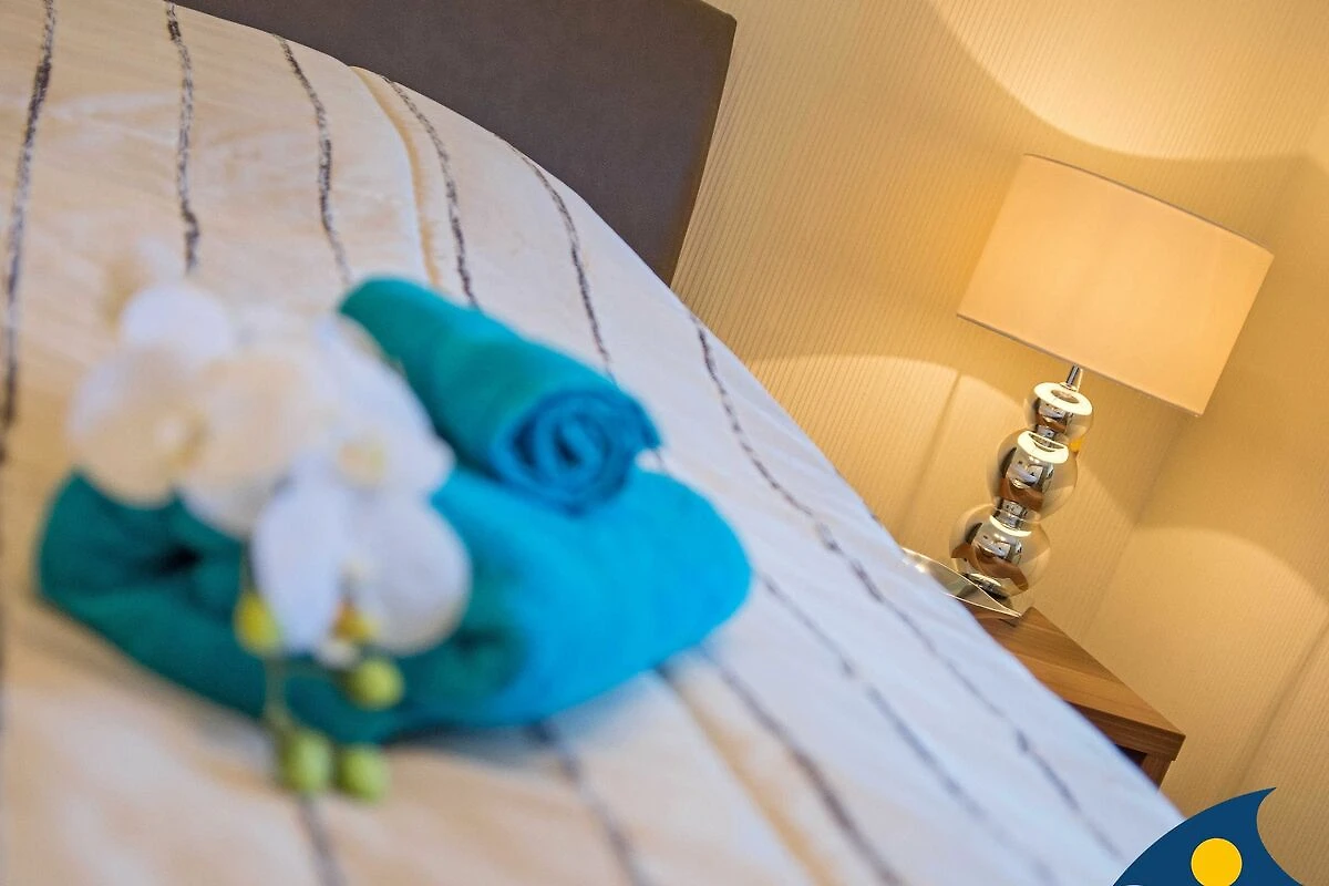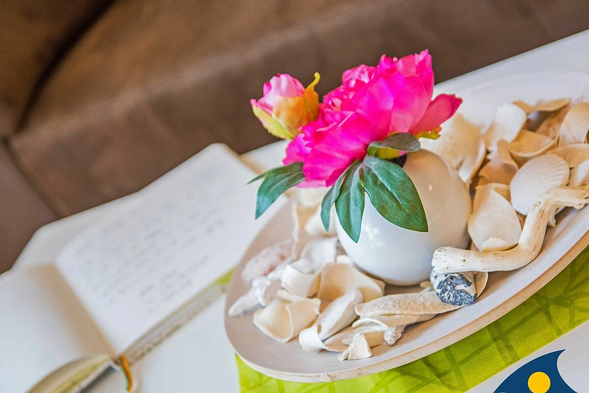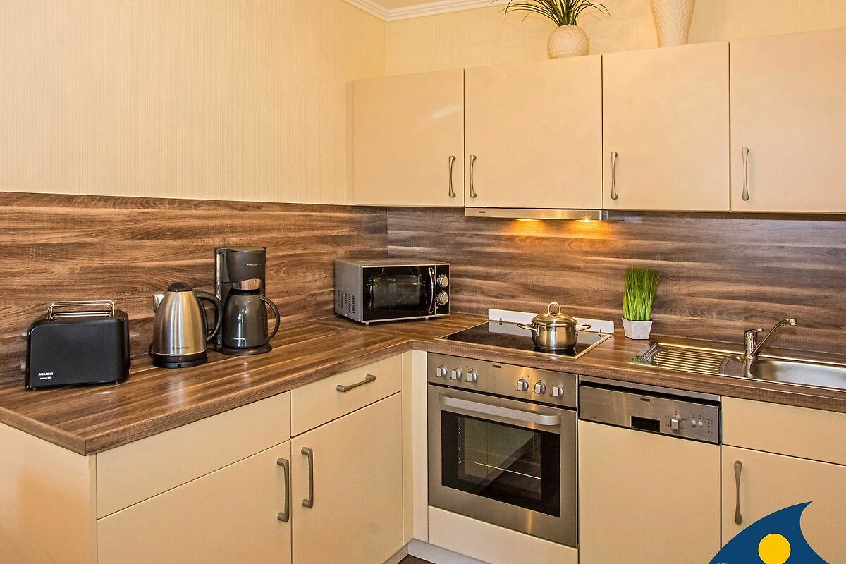Modern, liebevoll und gemütlich ausgestattet begrüsst Sie diese herrliche 2-Raum-Ferienwohnung. Das Wohnzimmer mit dem bequemen Sofa, der grossen Fensterfront und der offenen Küche lässt Sie einen traumhaften Urlaub zu Zweit erleben. Der schöne Balkon lädt zum Frühstücken, zum Stöbern in einem schönen Buch oder einem Gläschen Wein ein. Von hier aus reicht der Blick bis zum Meer und zum weissen Sandstrand. Diesen erreichen Sie in 3 Minuten zu Fuss.