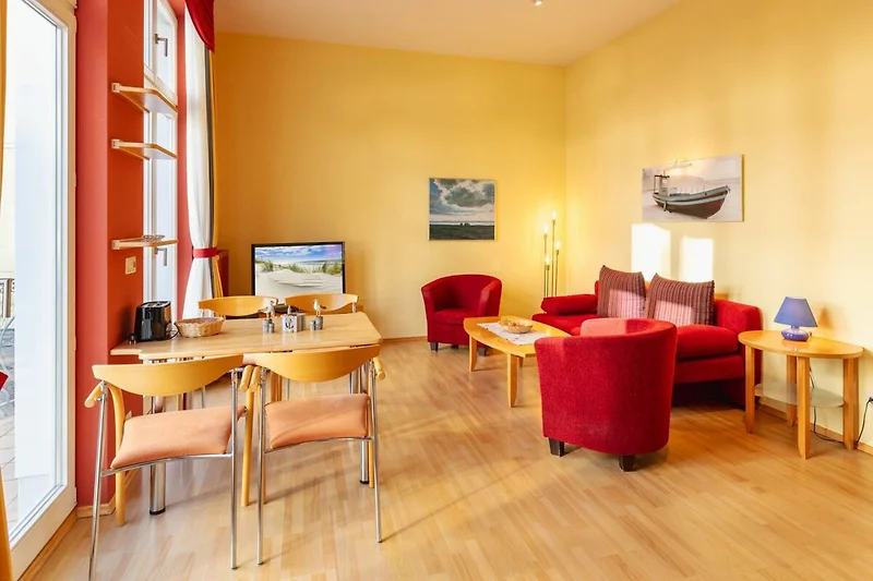 Die ca 45 qm grosse komfortable 2-Raum-Ferienwohnung befindet sich in der ersten Etage der Dependance und verfügt über einen Balkon.