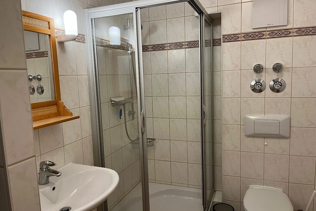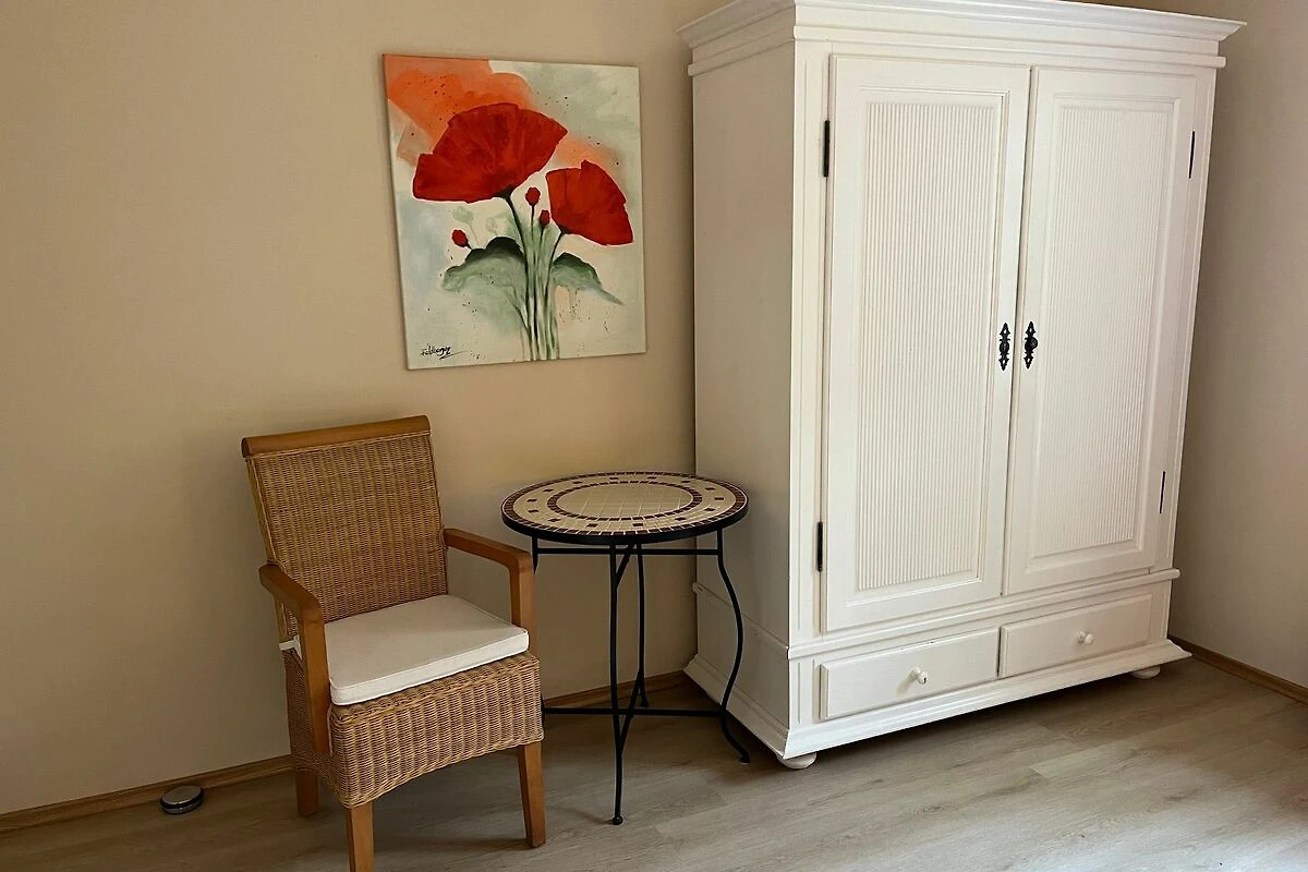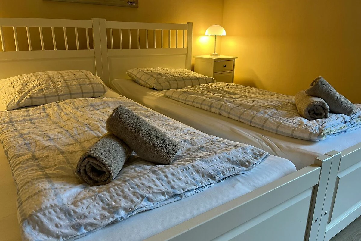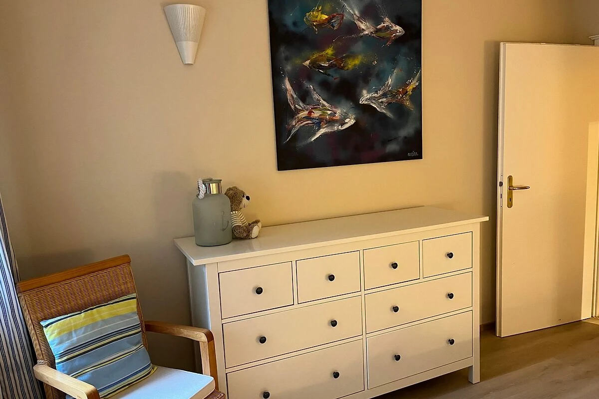 Die helle Wohnung im Erdgeschoss verfügt über 120 m² mit 3 separaten Schlafzimmern (davon ein Familienzimmer mit einem Doppelbett und einem Schlafsofa) und einem Wohnzimmer und bietet Platz für bis zu 8 Personen. Ein geräumiger begehbarer Kleiderschrank ist vorhanden. Die Süd-Terrassen mit eigenem Strandkorb grenzen unmittelbar an das Naturschutzgebiet Schloonsee. Die Wohnung besitzt zwei geräumige Bäder mit Waschmaschine und Trockner. Die Küche ist voll ausgestattet mit Geschirrspüler, Ceran-Kochherd und Kühl-/Gefrierkombination. Unseren Gästen stehen zwei Parkplätze zur Verfügung.