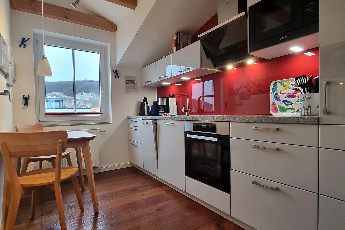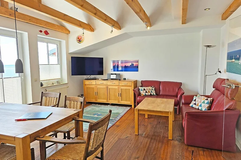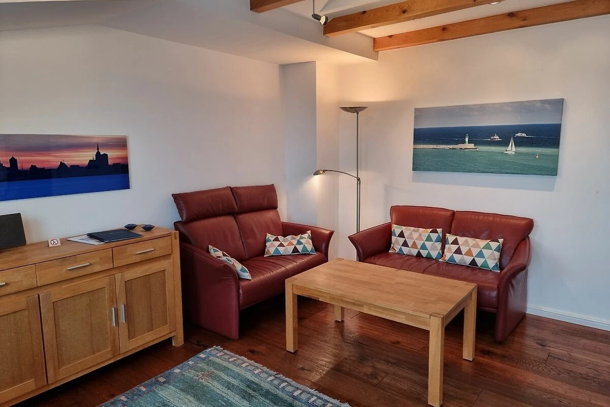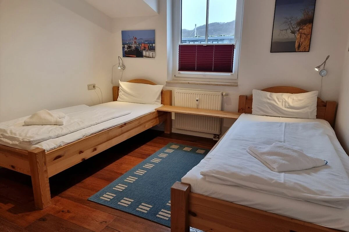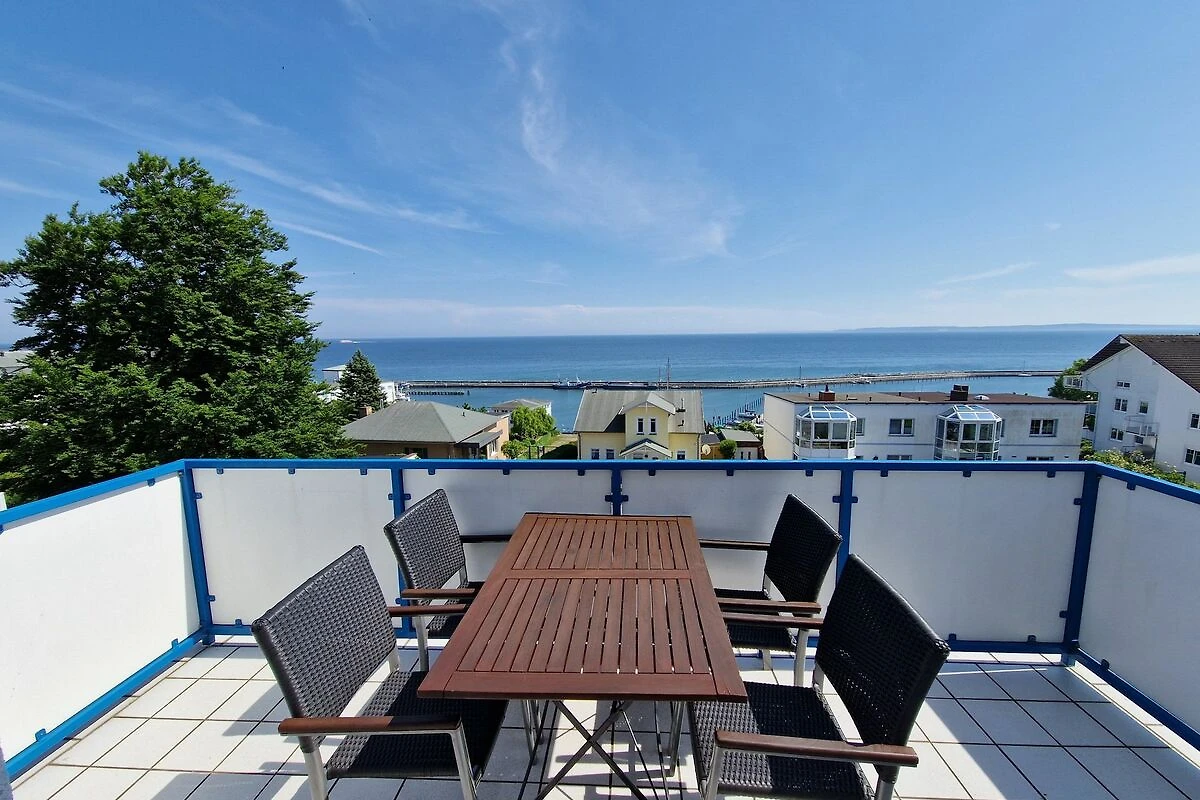 Die gemütlich und modern eingerichtete 3-Raum-Ferienwohnung besteht aus einem Wohnraum mit separater Sitz- und Essecke, TV, WLAN, Radio und CD-Player. Vom Wohnzimmer aus erreichen Sie den grossen Balkon, dieser lädt zum Verweilen ein. Sie geniessen einen herrlichen Seeblick und können die Schiffe beim Ein- und Auslaufen im Stadthafen beobachten. Der Balkon ist ausgestattet mit Sonnenmöbel und einer elektrischen Markise. Die zwei separaten Schlafräume sind jeweils mit einem Doppelbett ausgestattet. Das neue Badezimmer bietet eine grosse Dusche, Waschtisch mit Spiegelschrank und Toilette. In der separaten Küche haben Sie die Möglichkeit sich selbst zu verpflegen. Hier befindet sich ein Herd mit Backofen, eine Spülmaschine, eine Mikrowelle und natürlich alles was dazu gehört.