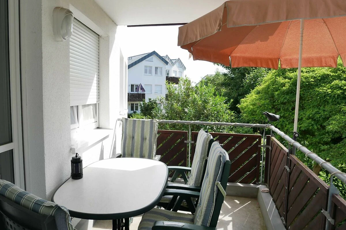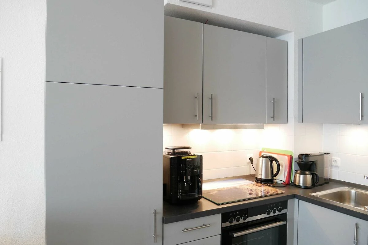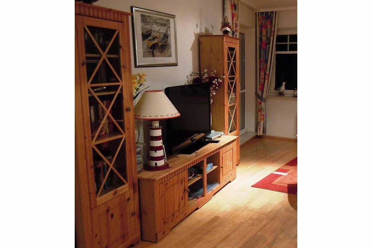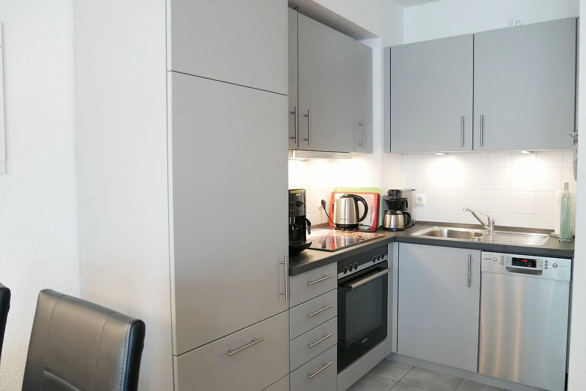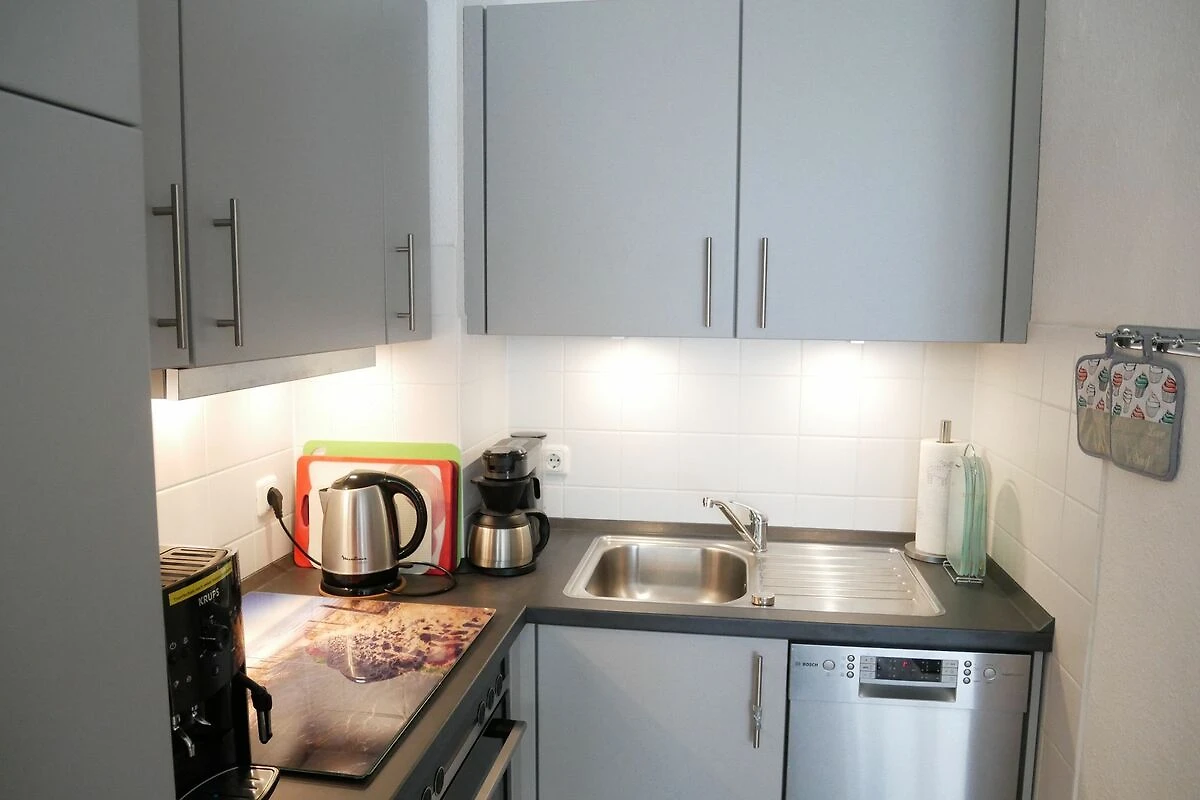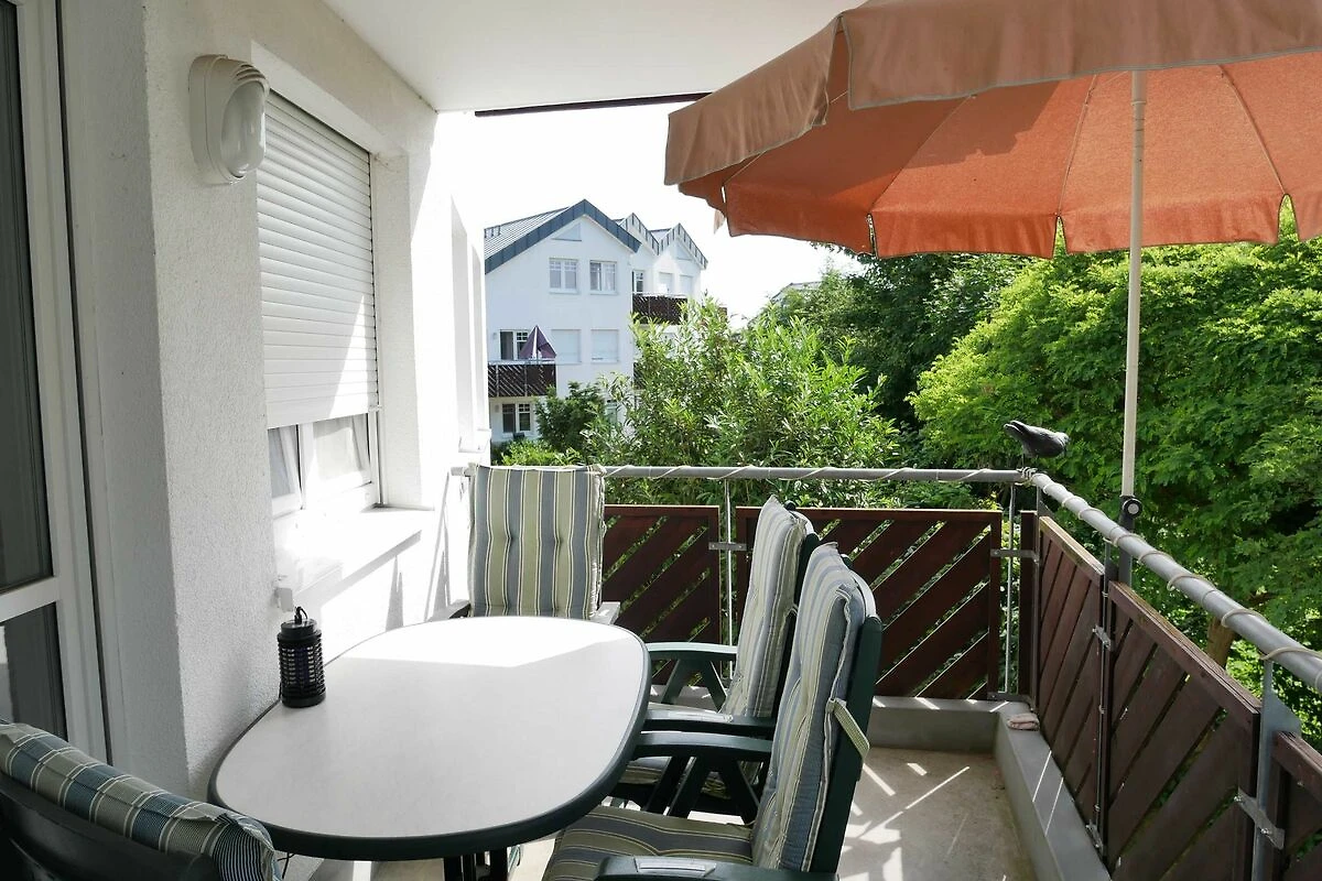 Die moderne, helle NICHTRAUCHER-3-Raum-Ferienwohnung befindet sich im 1. OG. und verfügt über einen sonnigen Balkon zur Südseite. Es erwartet Sie ein gemütlicher Wohn-Essbreich mit Smart-TV , Radio mit CD-Player und DVD-Player. Im Wohnbereich befindet sich auch die offene Wohnküche mit Geschirrspüler, Cerankochfeld, Backofen, Kühl-/Gefrierkombination, Mikrowelle, Kaffeevollautomaten, Toaster, Wasserkocher und Kochgeschirr. Gut schlafen werden Sie in den zwei separaten Schlafzimmern ( 1 x Doppelbett mit Flat-TV und 1 x zwei Einzelbetten). Das Bad ist mit Dusche, WC und Fön ausgestattet. Der Fussboden besteht aus Echtholz-Streifenparkett. Die Erstausstattungen Bettwäsche und Handtücher sind im Preis enthalten.