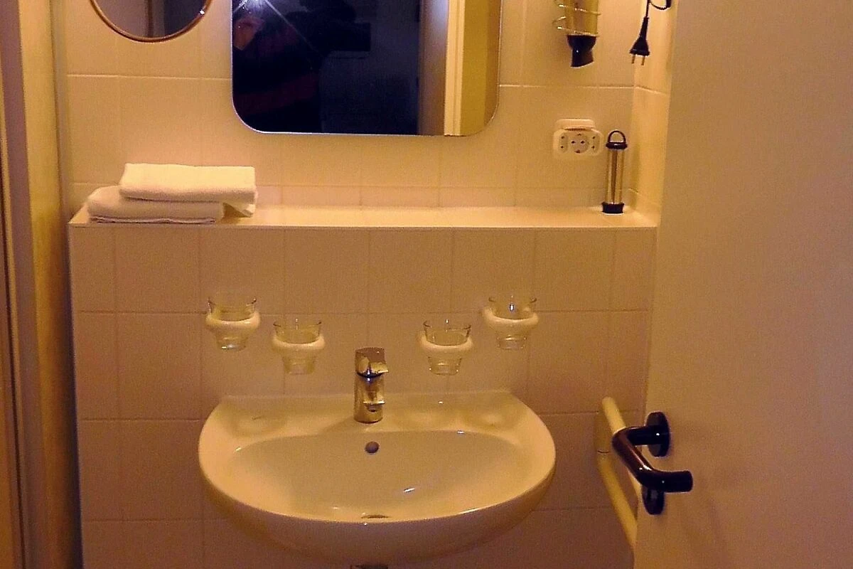Waschmaschine und Wäschetrockner zur Gemeinschaftsnutzung befinden sich in einem separaten Raum des Hauses im Erdgeschoss.