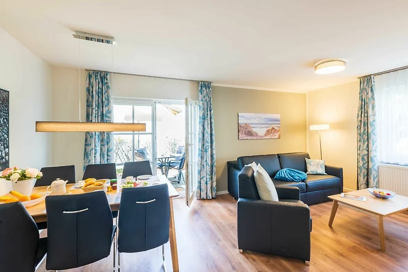 Die Wohnung liegt im Parterre und ist geschmackvoll eingerichtet mit allem Komfort, wie voll ausgestattete Küchenzeile (Backofen,Geschirrspüler,Ceran-Induktion, Mikrowelle sowie mit diversen Kleingeräten) offen zum Wohnbereich.1 Schlafzimmer mit Doppelbett, grossem Kleiderschrank und Flat Screen TV, 2. Schlafraum mit Etagenbett (2,00 x 0,90m) . Liebevoll eingerichtetes Wohnzimmer mit Essbereich, Couch und Sessel. Das grosse Flat Screen TV ,Player und das kostenlose WLAN sorgen für Unterhaltung bei Gross und Klein. Die erstklassig ausgestattete offene Wohnküche bietet alles für ein gemeinsames Frühstück, Mittag- und Abendessen mit der ganzen Familie.Am Wohnbereich angrenzende möblierte Südwest-Terrasse.1 Parkplatz steht kostenfrei zur Verfügung. Wäschepaket auf Wunsch pro Person 25,-. Bitte um Vorbestellung oder gleich online dazu buchen.
