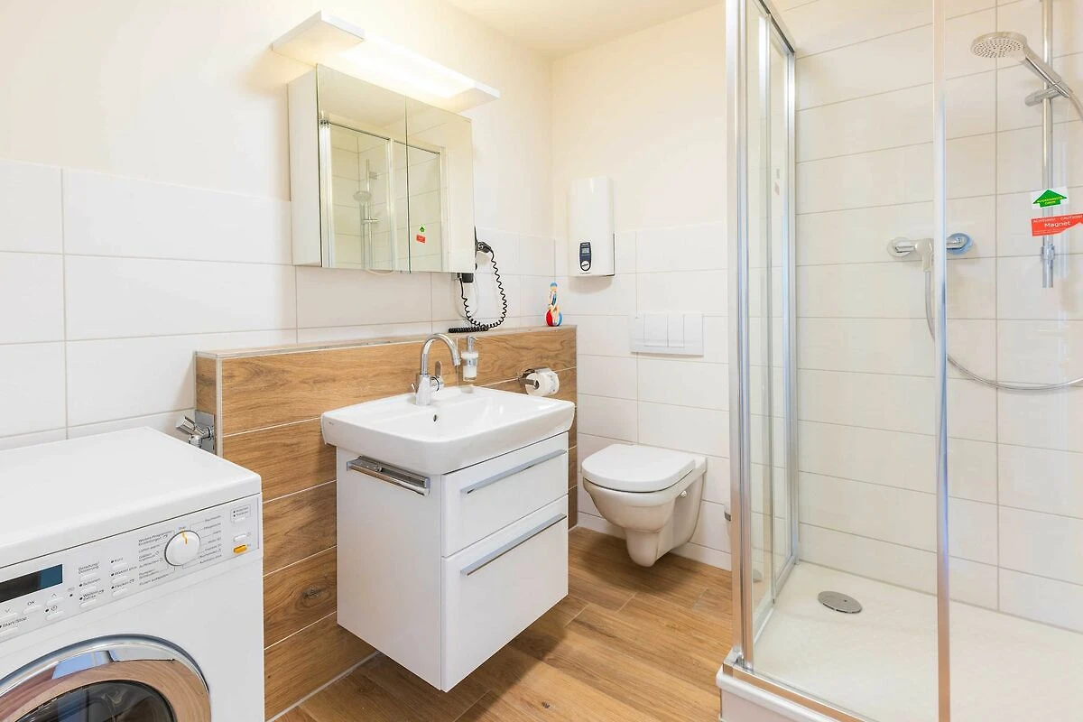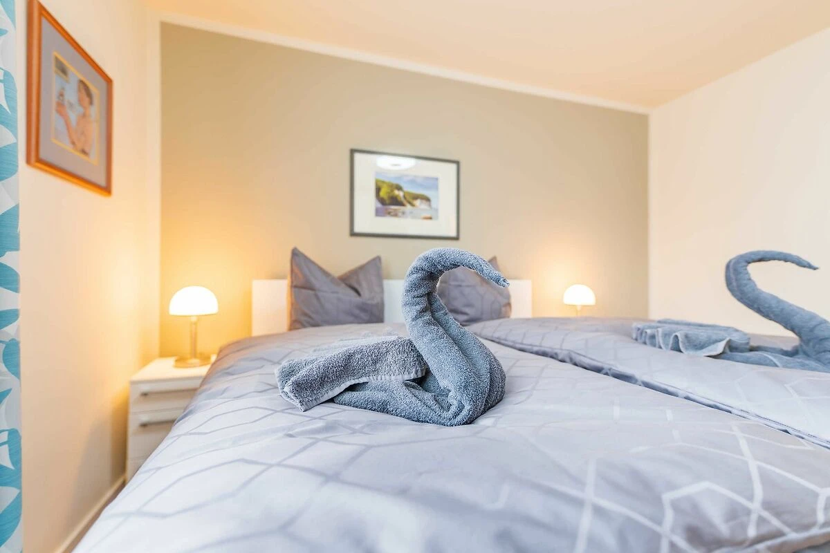 Den schönen Sandstrand der Binzer Bucht erreichen Sie nach ca. 3 Gehminuten in östliche Richtung. Wenn Sie sich in westliche Richtung bewegen, sind Sie nach ca. 2 Minuten am Schmachter See. Dieser empfängt Sie mit ruhigen Parkbänken, einem Kinderspielplatz und viel Natur. In unmittelbarer Nähe finden Sie eine Bäckerei, ein Getränke- und Supermarkt sowie verschiedene Restaurants.